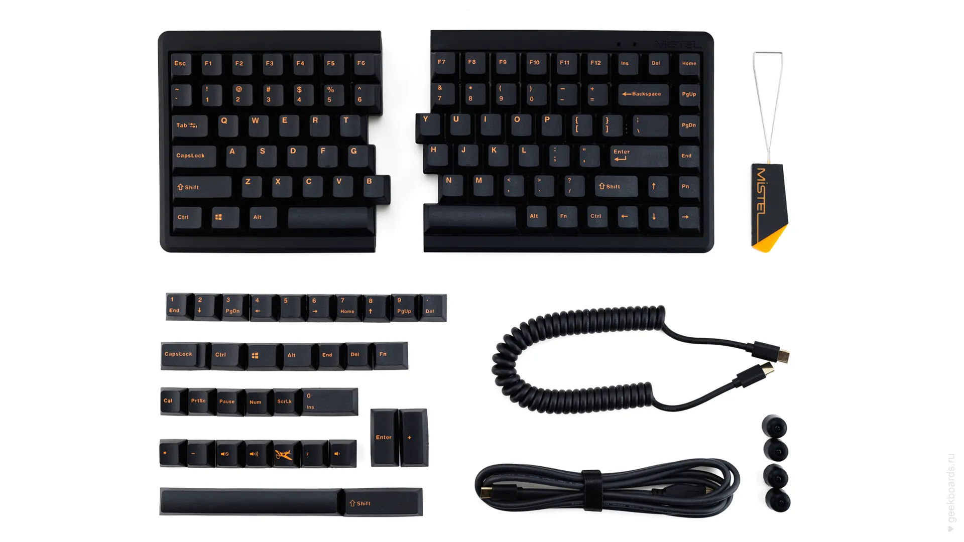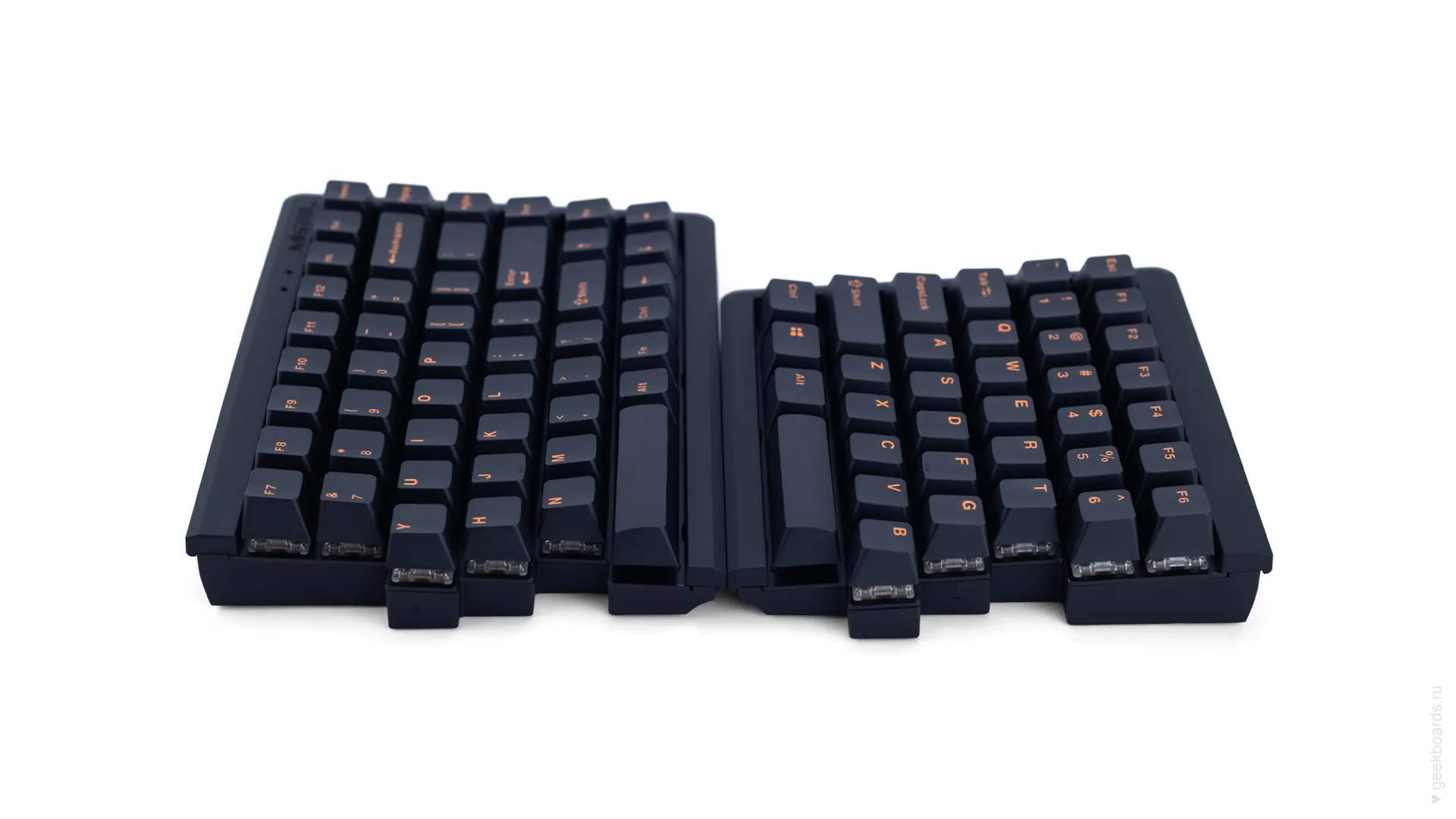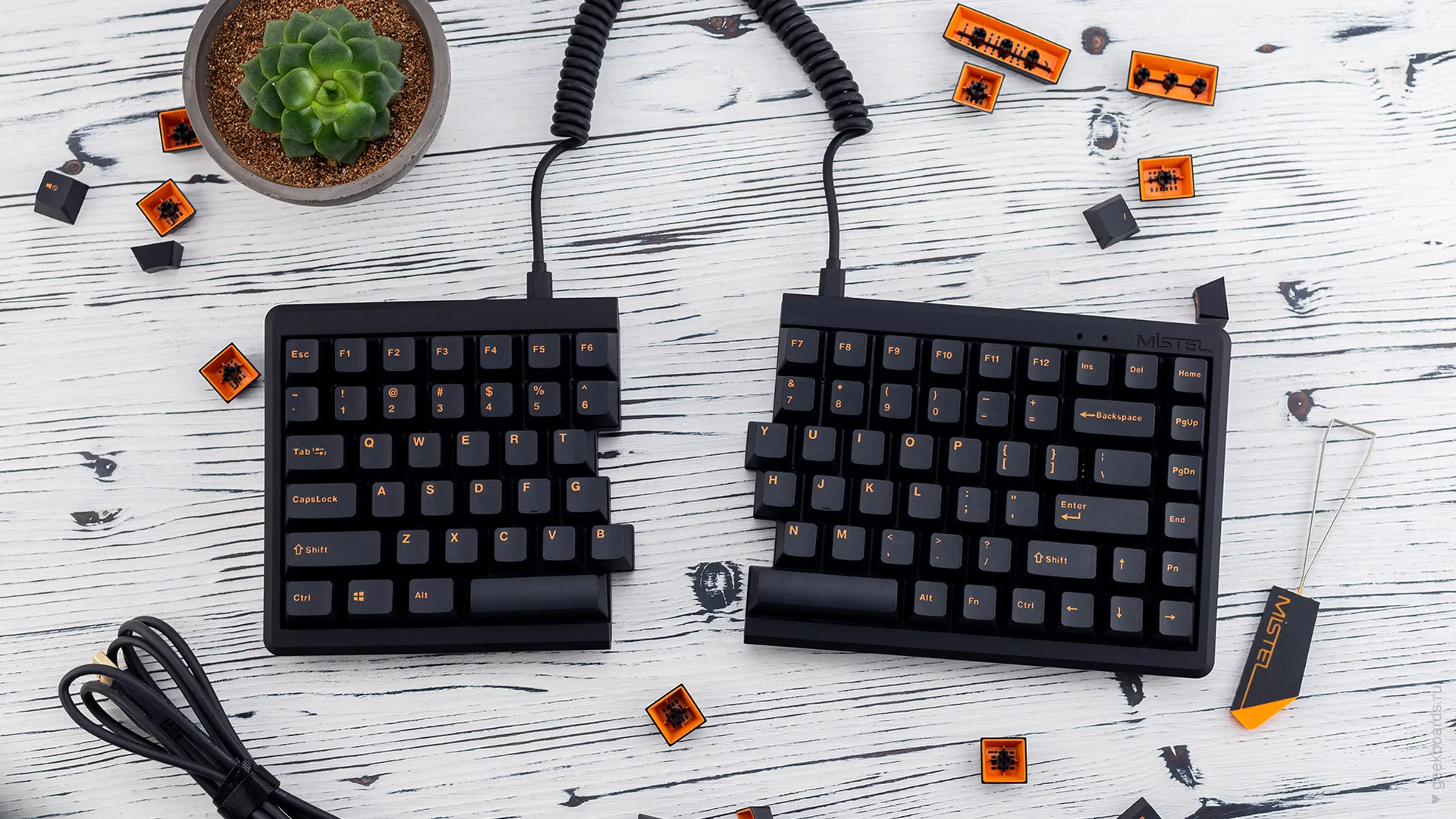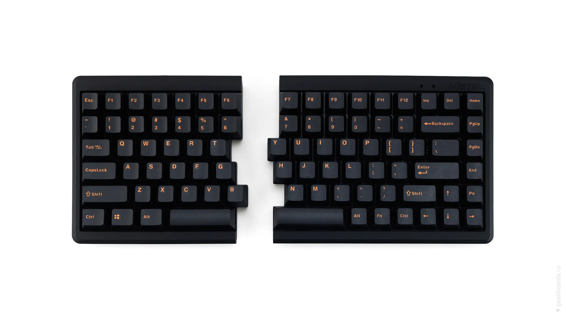 Mistel — тайваньская компания, которая славится своими сплитами. Сплит — это эргономический форм-фактор, фишка которого в разделении клавиатуры на две отдельные части. Такой подход позволяет расположить запястья анатомически ровно, благодаря чему руки меньше устают при работе.