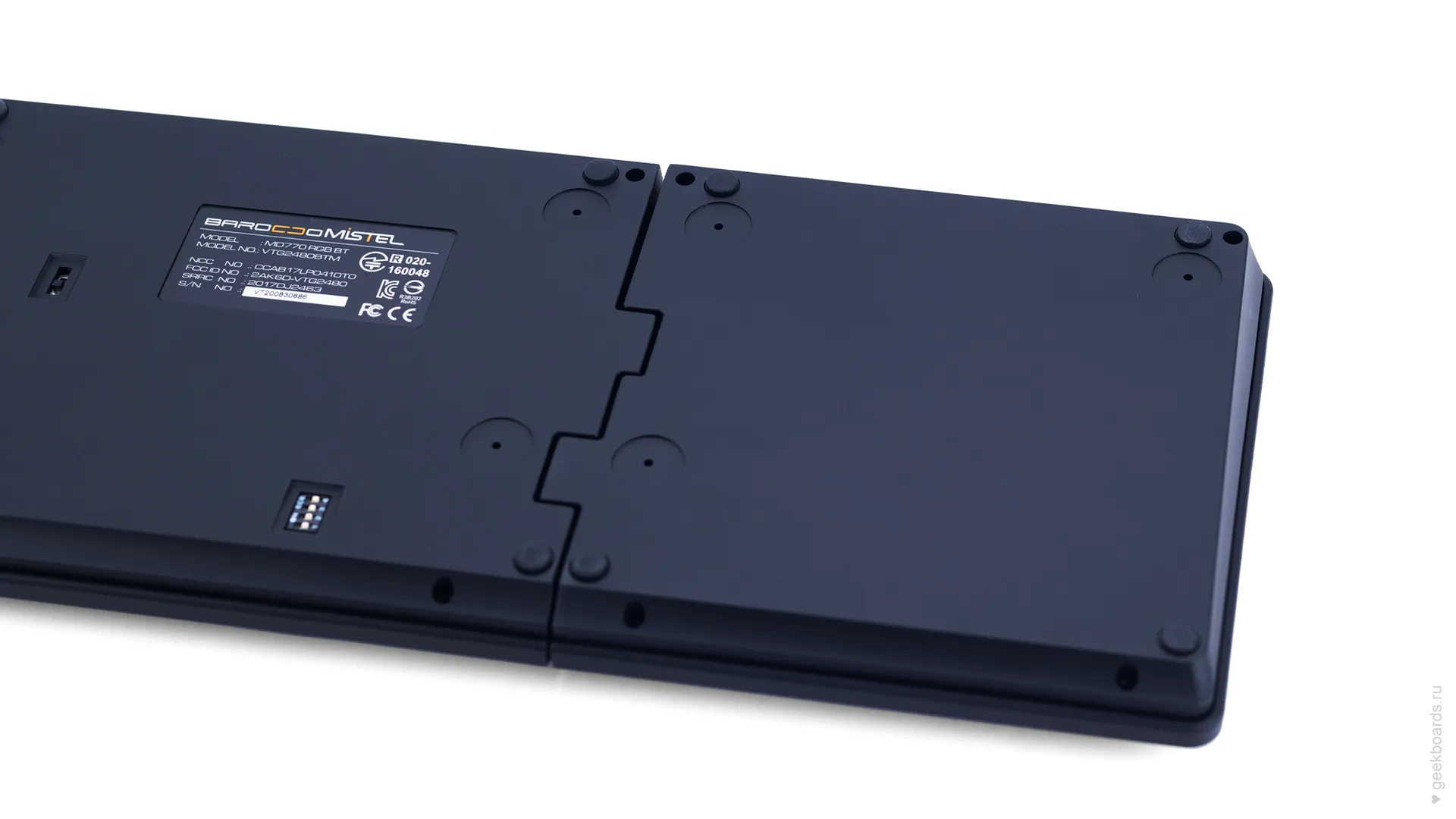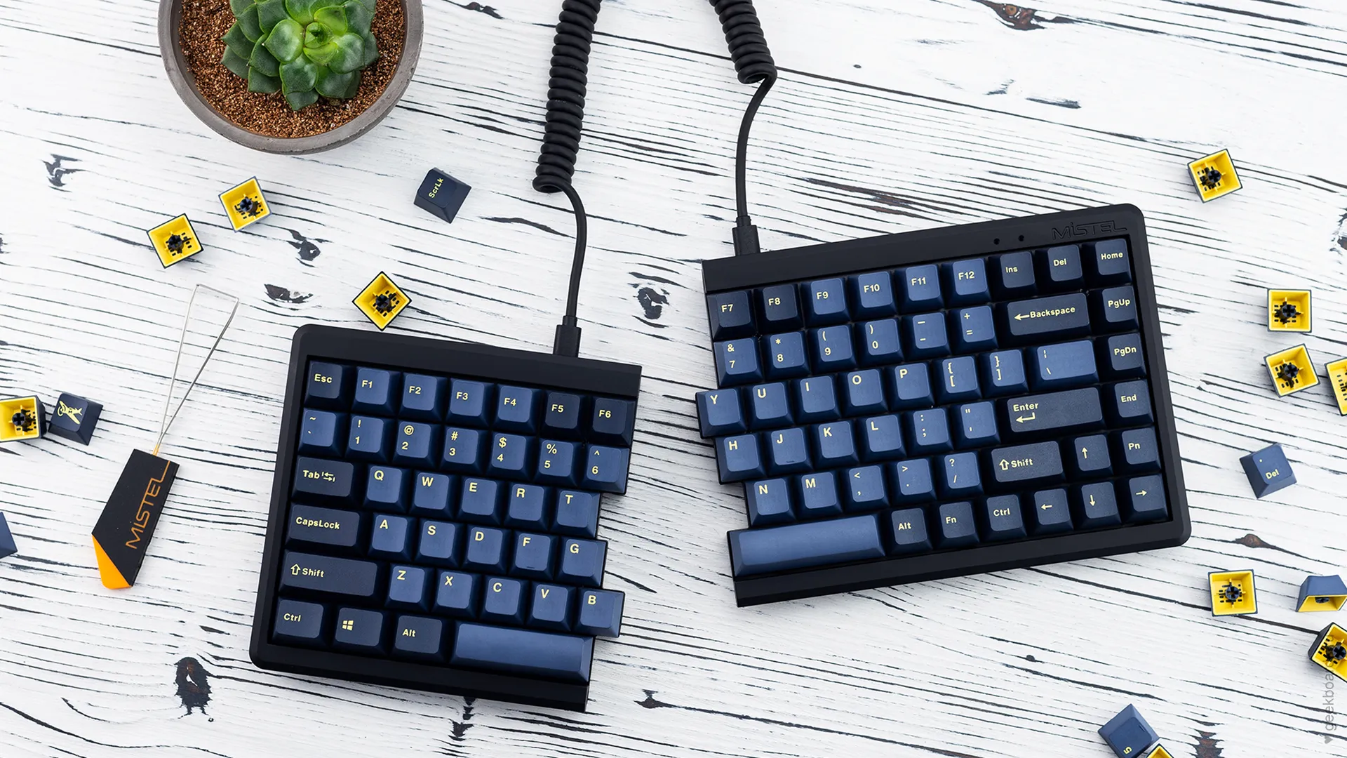 Mistel — тайваньская компания, которая славится своими сплитами. Сплит — это эргономический форм-фактор, фишка которого в разделении клавиатуры на две отдельные части. Такой подход позволяет расположить запястья анатомически ровно, благодаря чему руки меньше устают при работе.