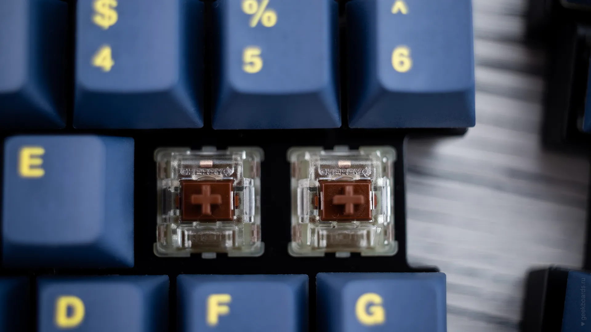 Клавиатура имеет RGB подсветку, клавиши выполнены из долговечного Double Shot PBT пластика, а в качестве переключателей используются Cherry MX.