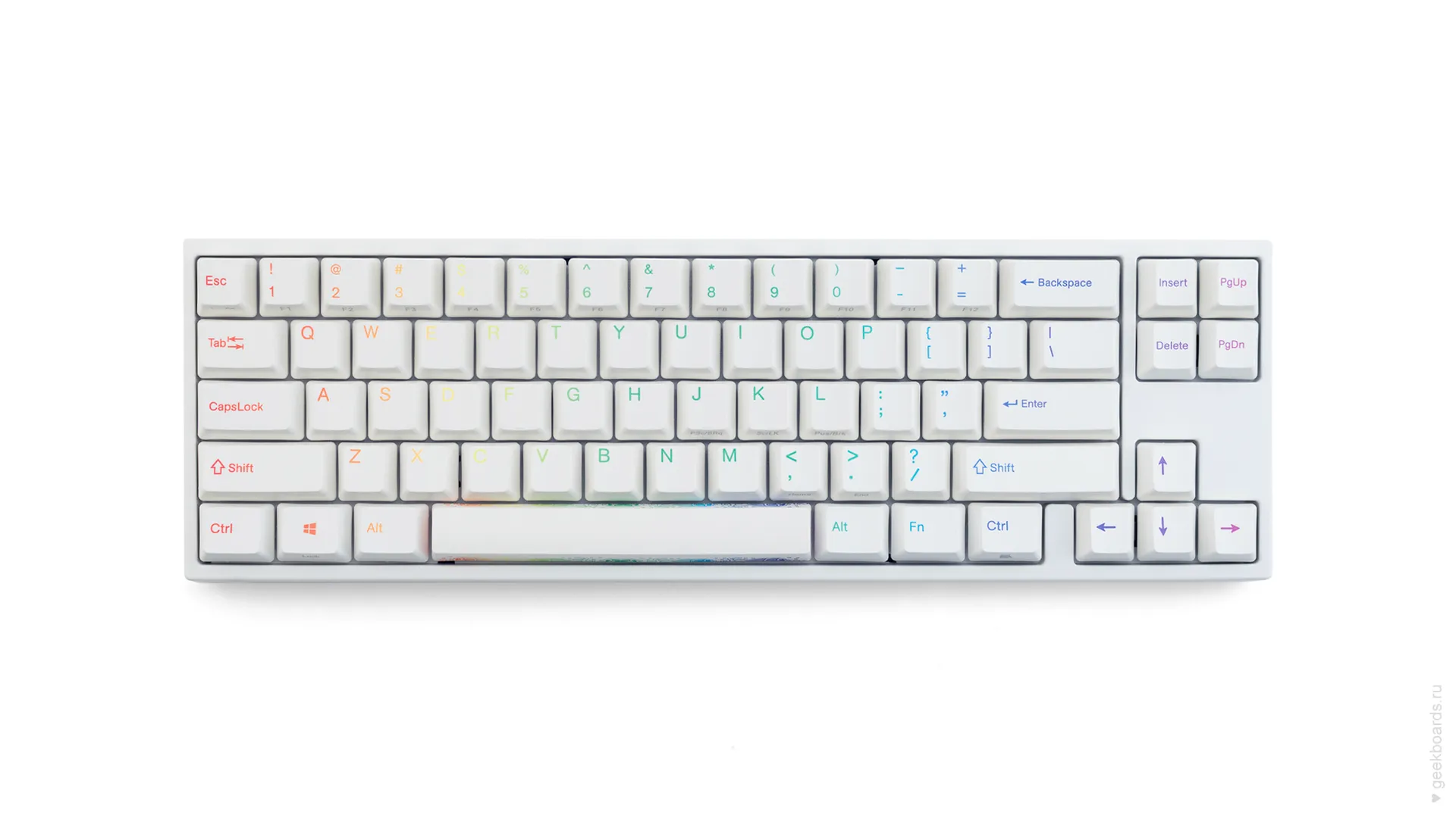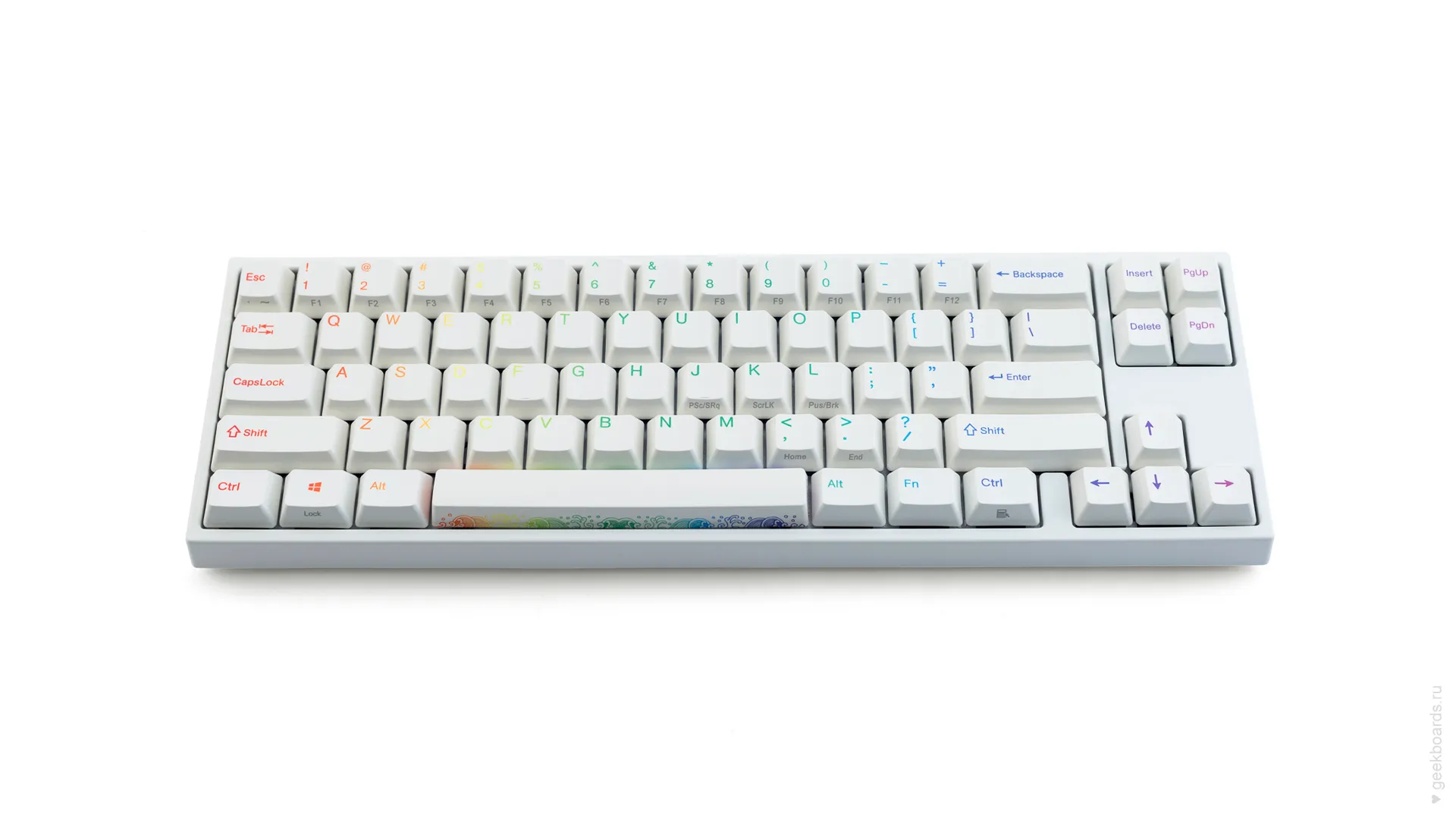 Уникальный радужный дизайн, представляющий собой сочетание классического белого цвета клавиатуры с незабываемыми рисунками на клавишах. Обязательно придётся по вкусу большинству пользователей.