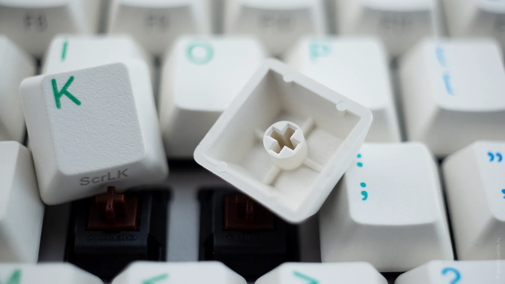 Сочетание стабилизаторов и смазки позволяет добиться максимально равномерного и плавного хода клавиш enter/space/shift/backspace, а сами клавиши легко снять с клавиатуры.