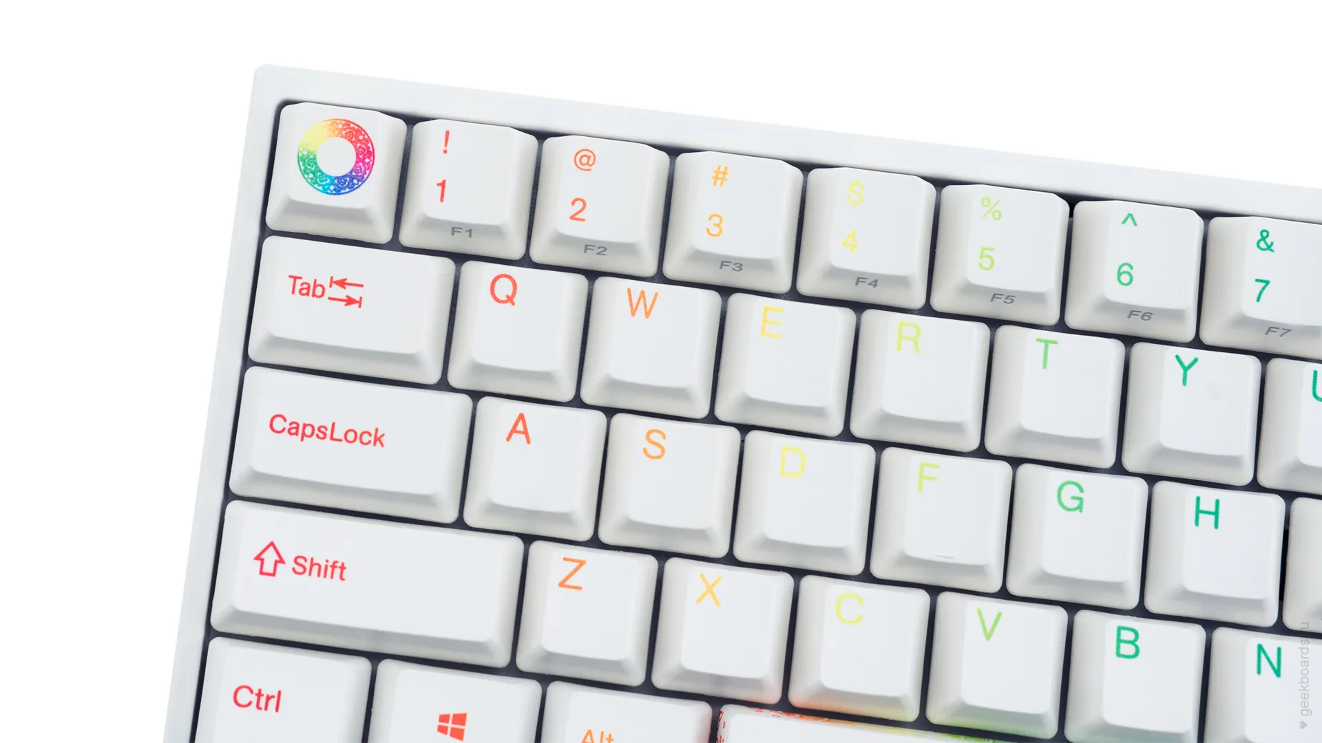 Клавиши изготовлены из высокопрочного пластика PBT с применением dye-sublimation технологии, с выгравированными символами на боках. Использование dye-sub позволяет символам никогда не стираться и никак не чувствоваться при печати, а качественный PBT пластик гарантирует надежность и долговечность.