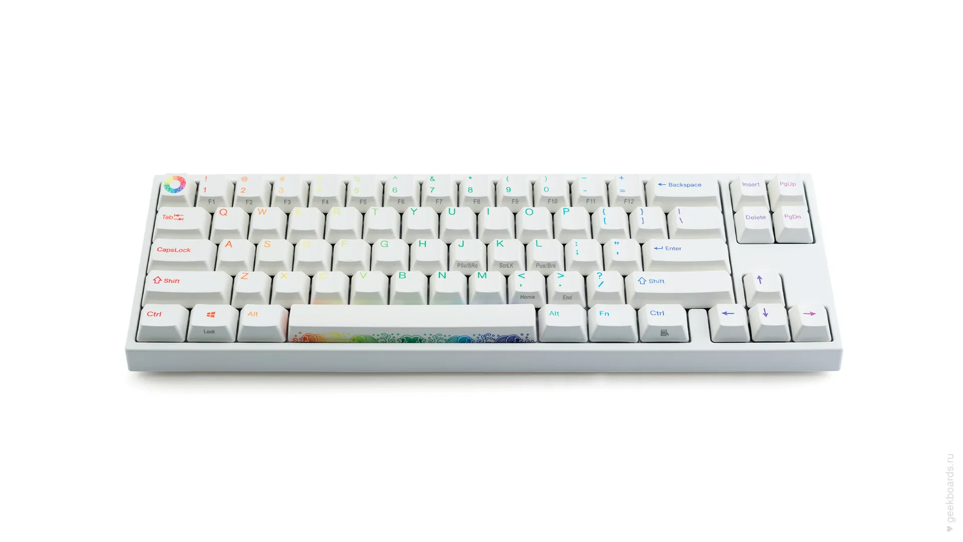 Уникальный радужный дизайн, представляющий собой сочетание классического белого цвета клавиатуры с незабываемыми рисунками на клавишах. Обязательно придётся по вкусу большинству пользователей.