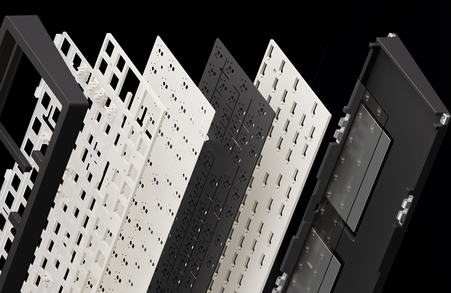 Внутренняя конструкция продумана так, чтобы минимизировать резонанс корпуса и сделать звук максимально чистым. Шумоизоляционные материалы внутри корпуса и между платой и плейтом эффективно поглощают вибрации, а дополнительные элементы стабилизируют переключатели и улучшают общее акустическое восприятие клавиатуры.