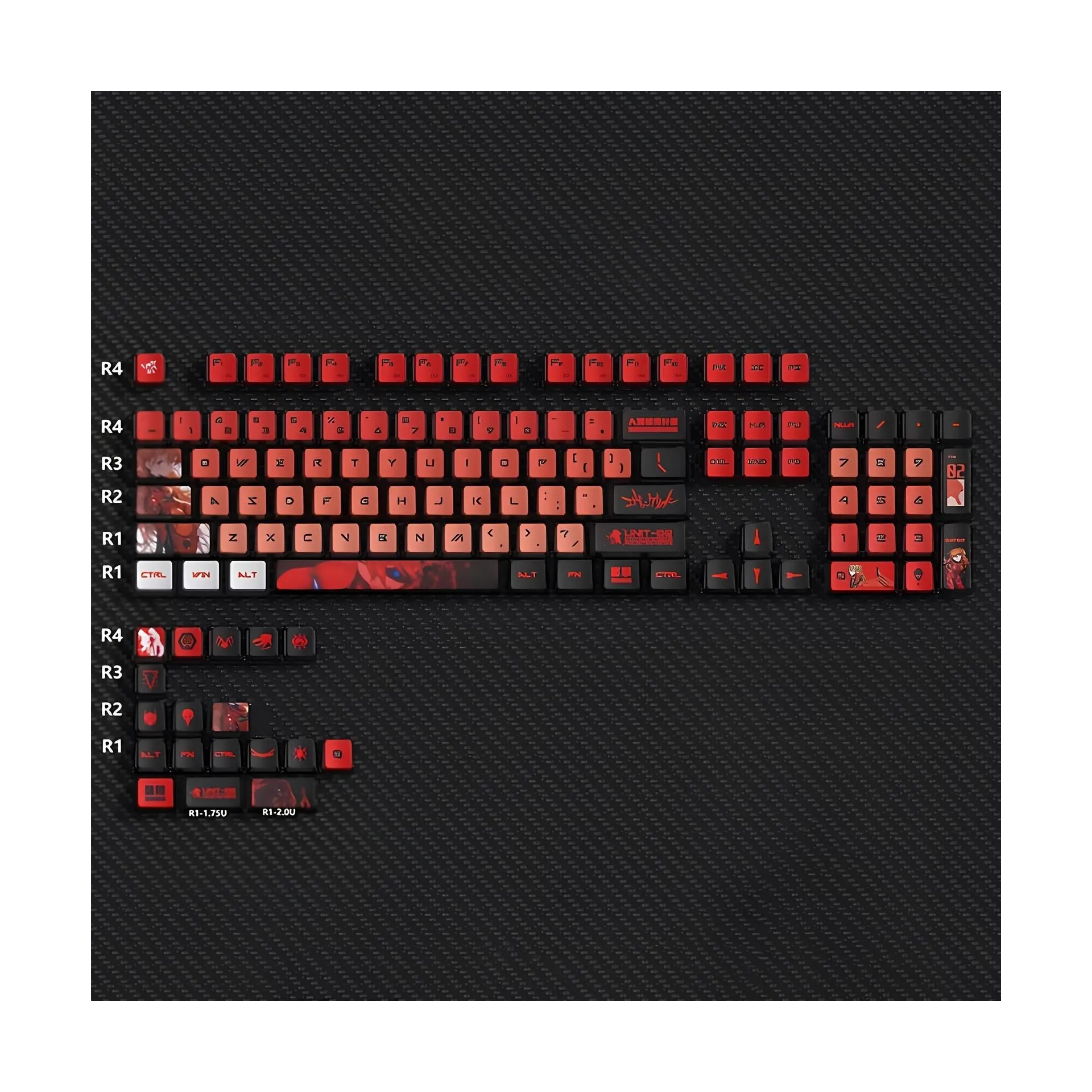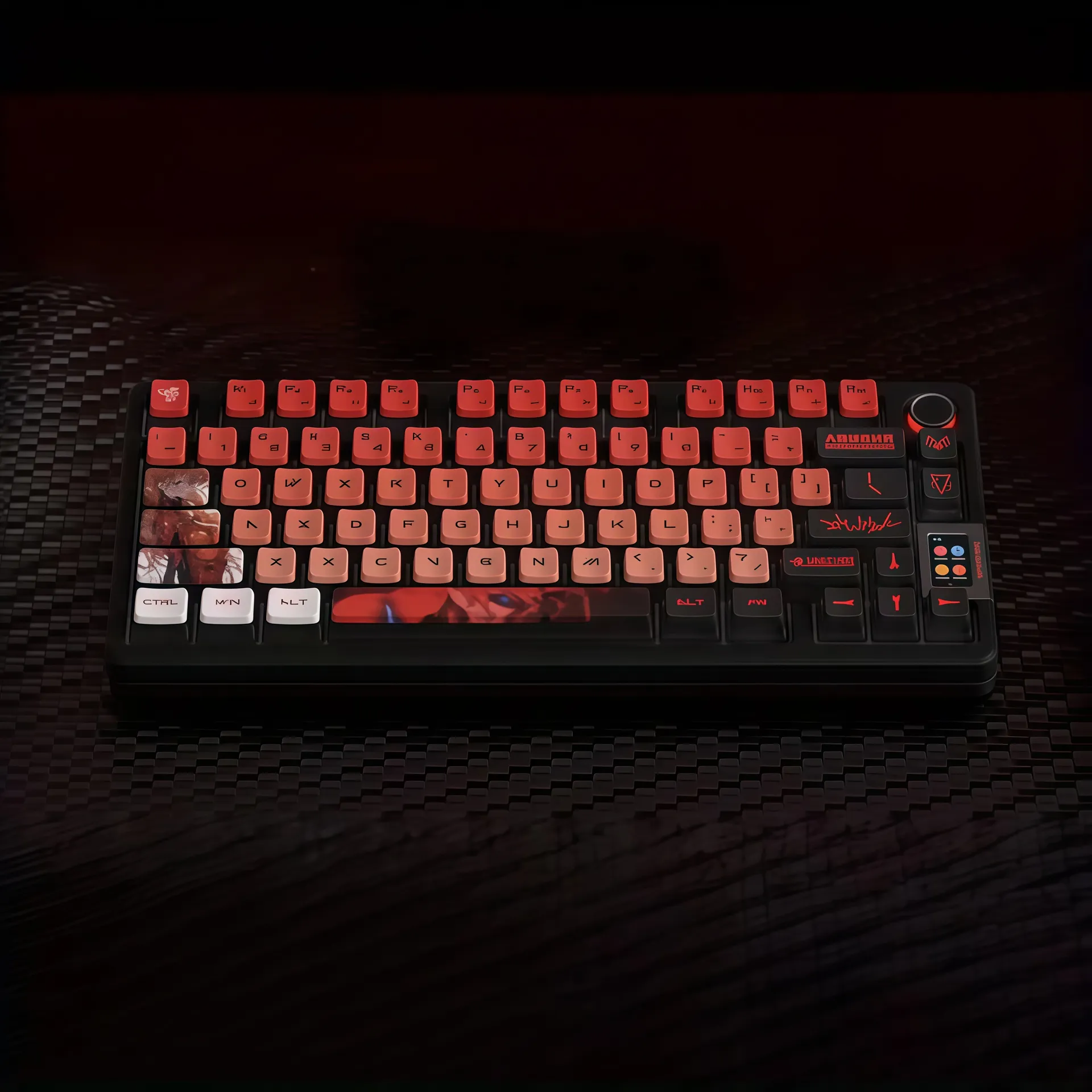 Этот комплект кейкапов вдохновлён эстетикой Neon Genesis Evangelion: тёмные оттенки, драматичные контрасты, акценты, навевающие атмосферу апокалипсиса и меха-битв.