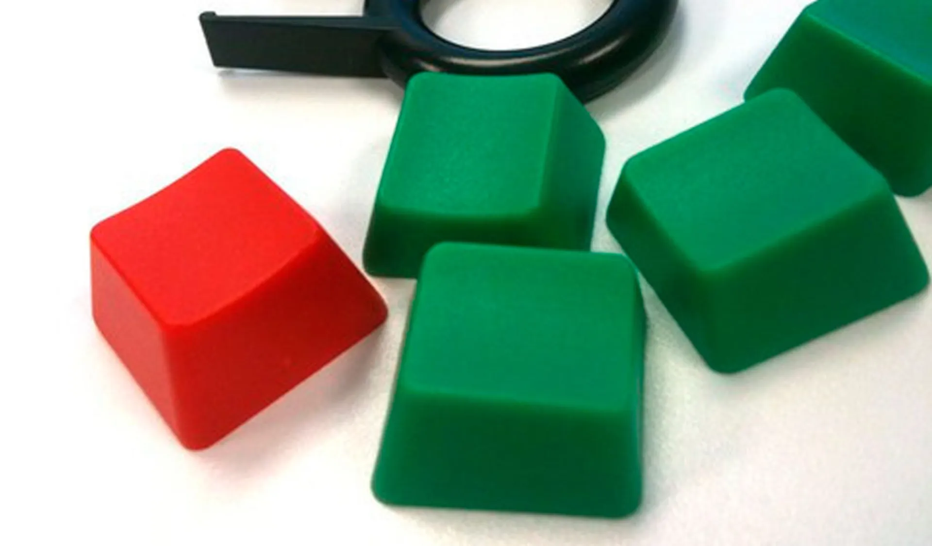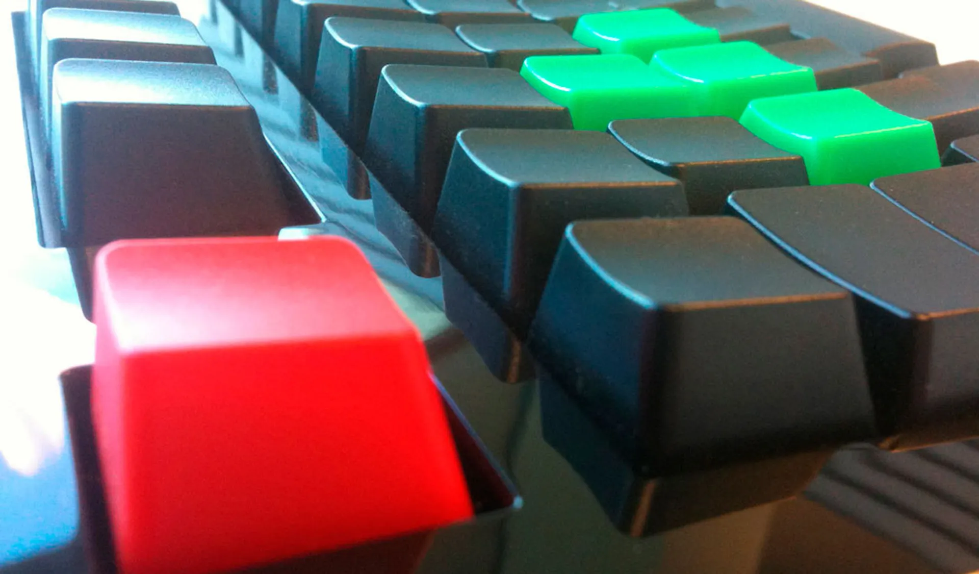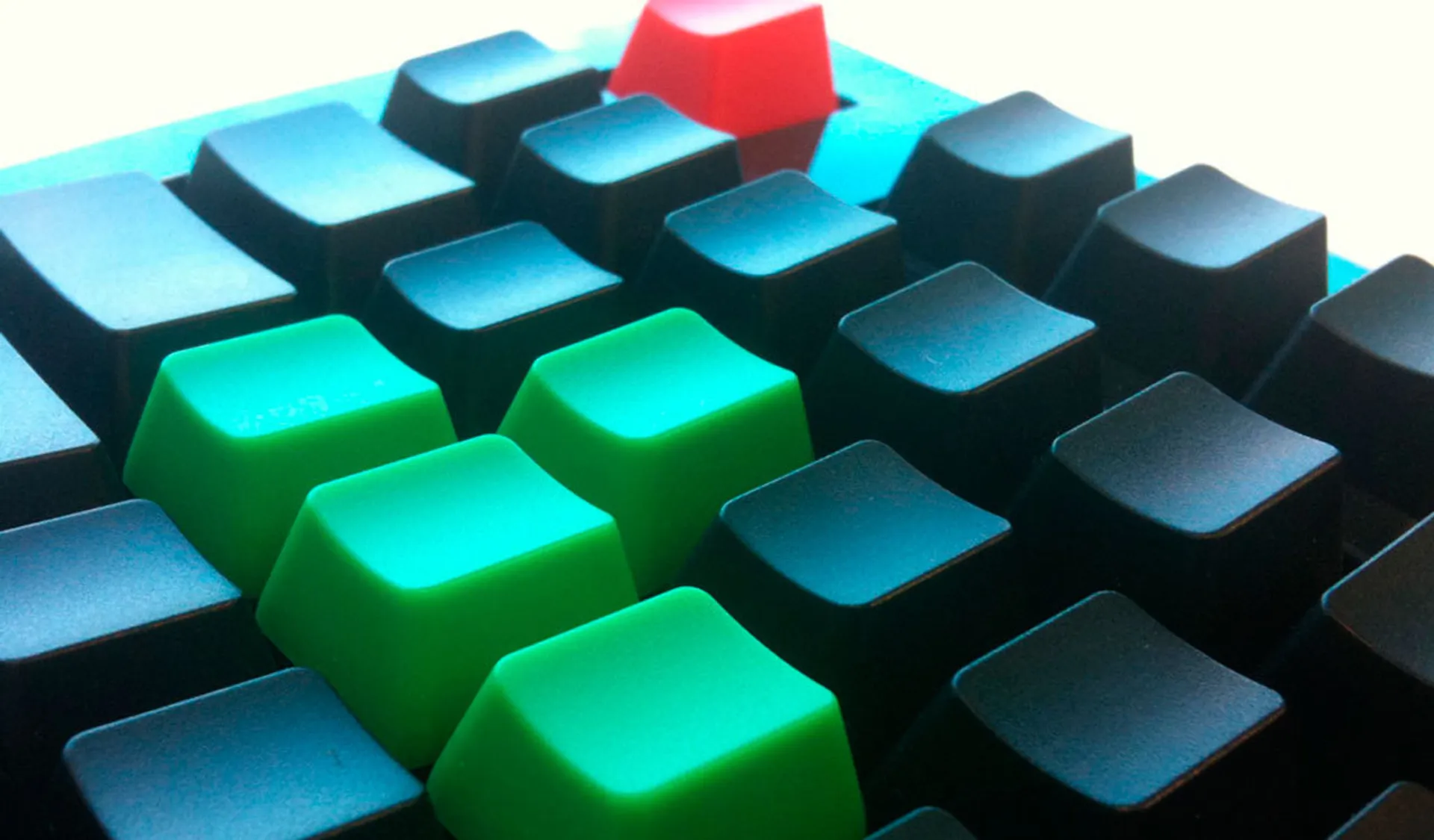 Набор из четырех зеленых и одной красной клавиши без обозначений для механических клавиатур с механизмами Cherry MX компании Das Keyboard. В набор входит 5 клавиш Escape, W, A, S и D и инструмент для вытаскивания кнопок