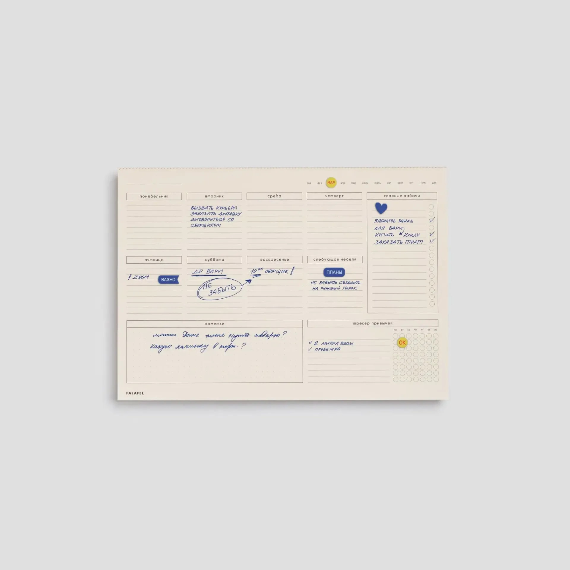 Настольный планировщик с отрывными листами Falafel Cane Sugar A4