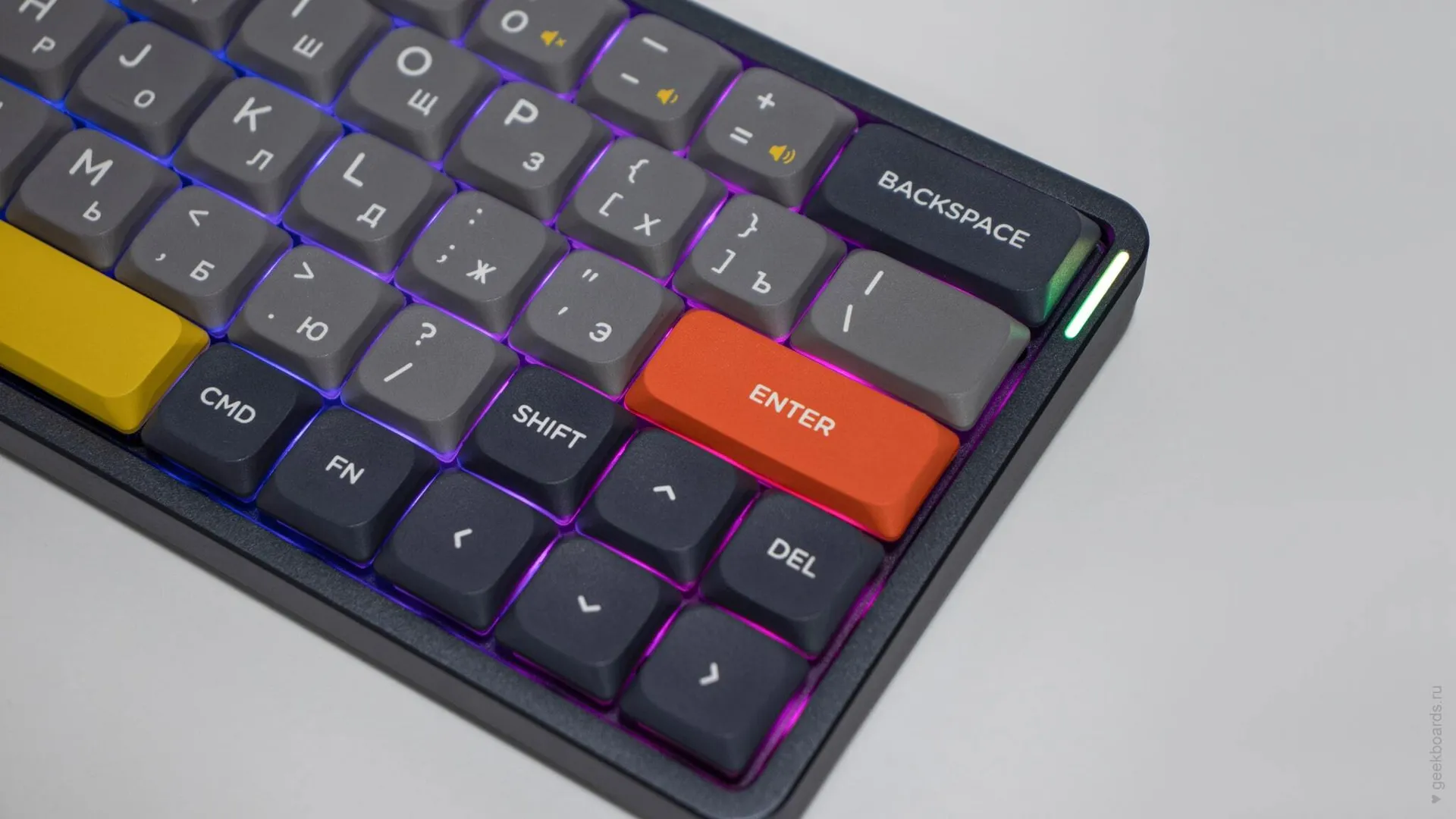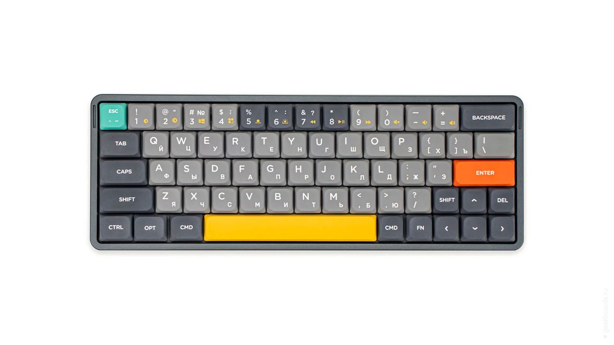 Сочетание 60% формата и низкопрофильных переключателей делает NuPhy мобильной и компактной — клавиатура не займет много места на рабочем столе и ее легко брать с собой.