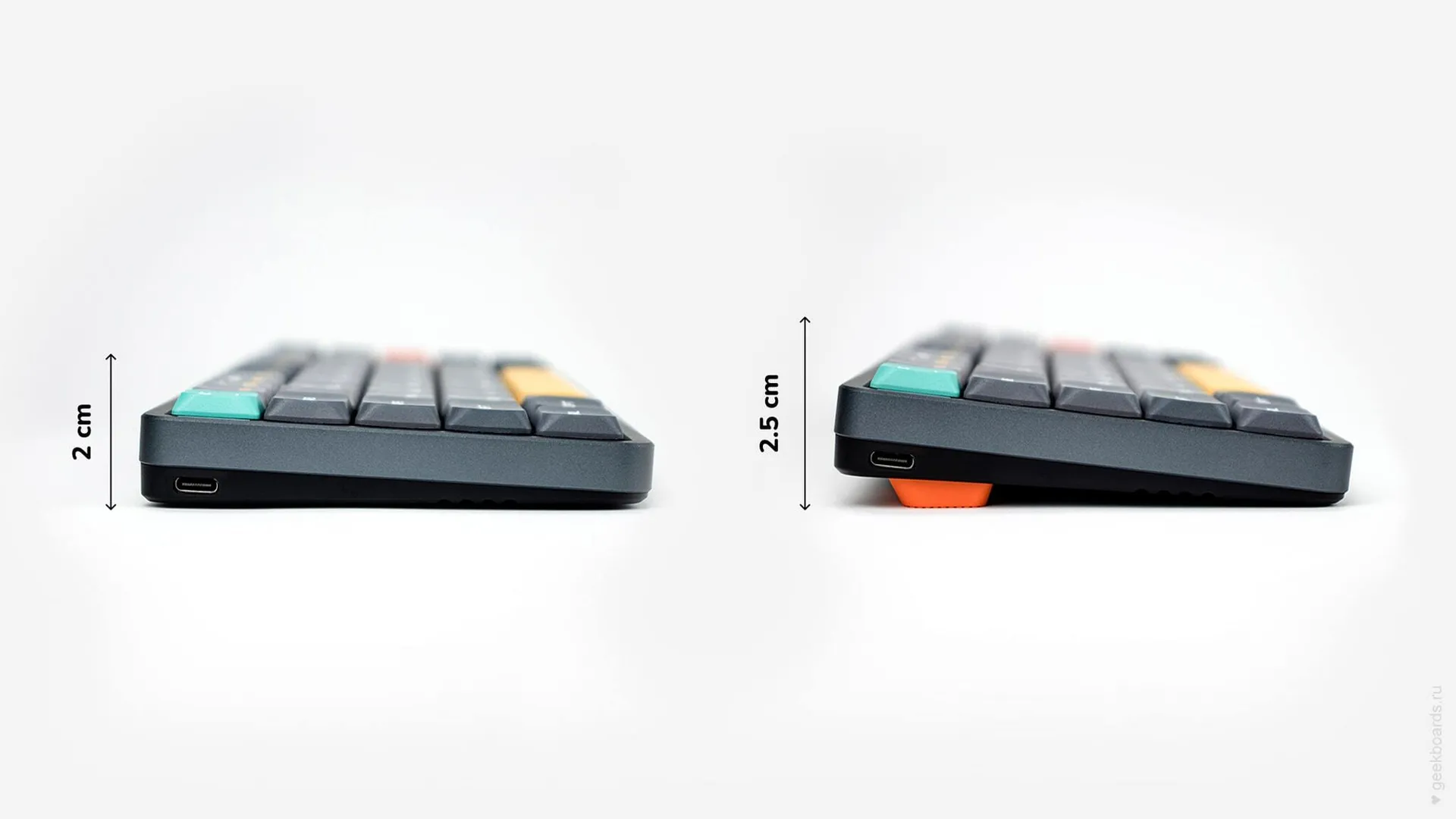 Съемные ножки на магнитах позволят немного приподнять клавиатуру. Угол наклона изменить нельзя.