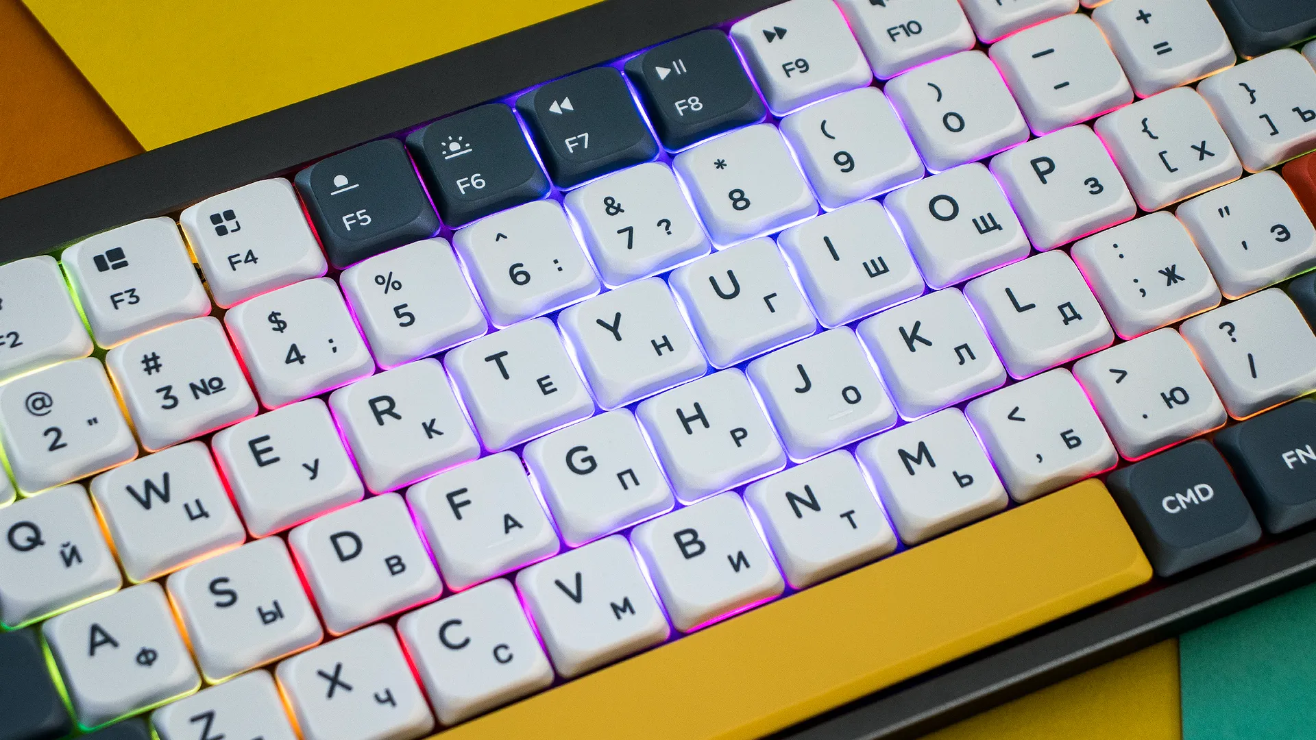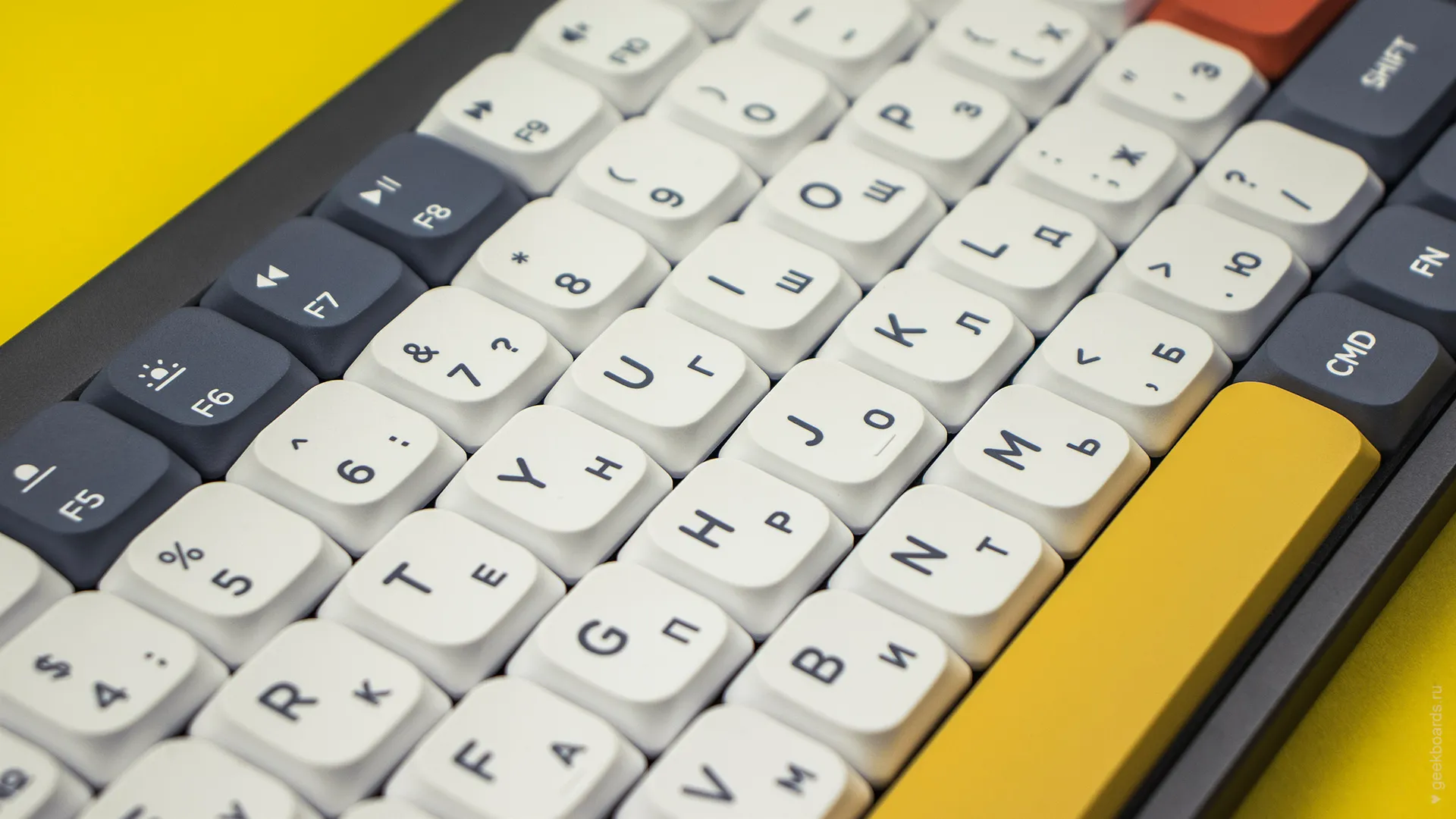 Низкопрофильные кейкапы из PBT пластика с применением dye-sublimation технологии. Гладкие и приятные на ощупь, а символы не стираются и не чувствуются при печати.