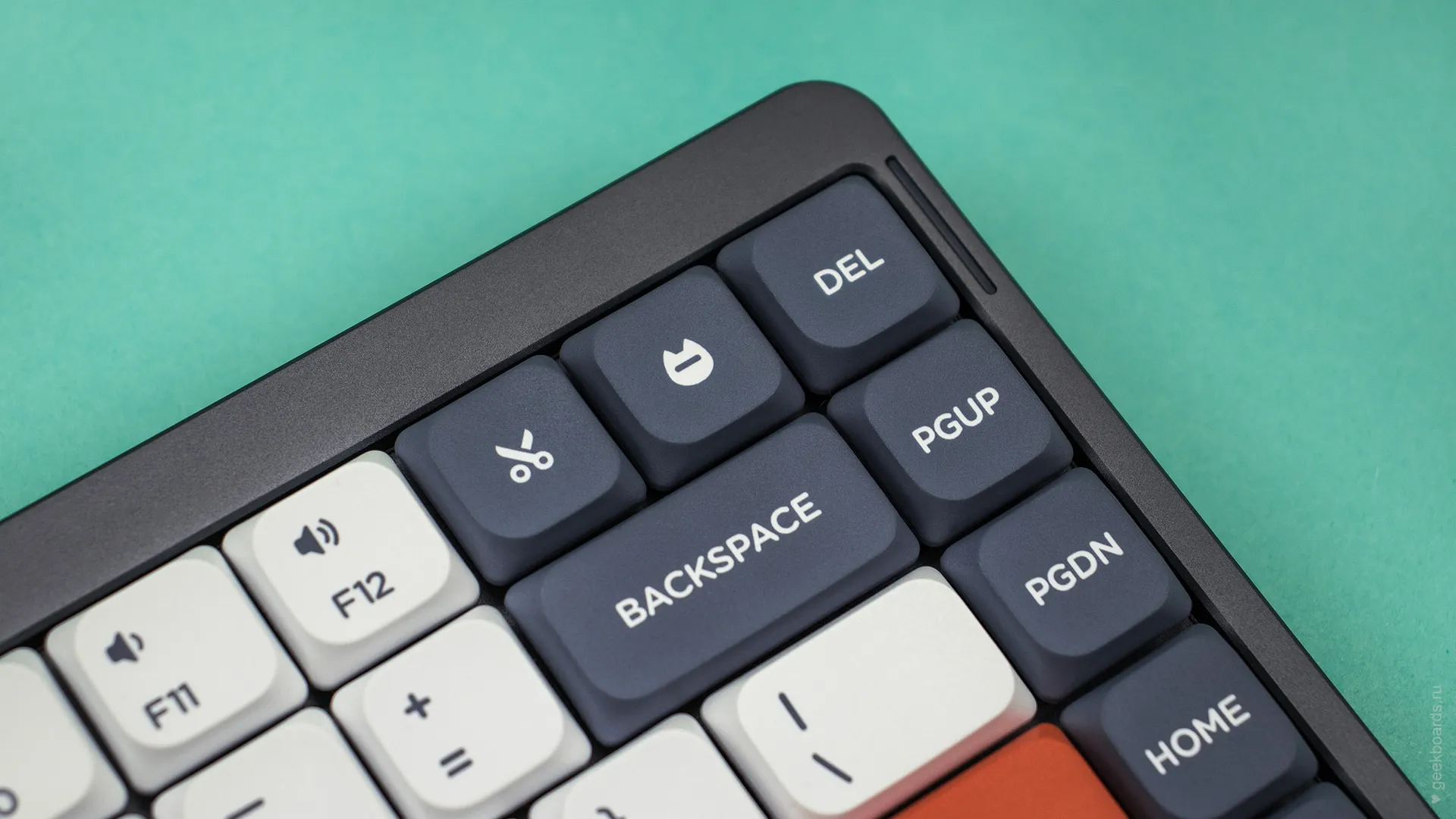 Сюда также подойдут кейкапы с профилями: DSA, VSA, XDA, DA, PG, NP, SA и Cherry. Рекомендуем примерять конкретный набор перед покупкой, так как из-за особенности строения стабилизаторов длинные клавиши могут слетать.