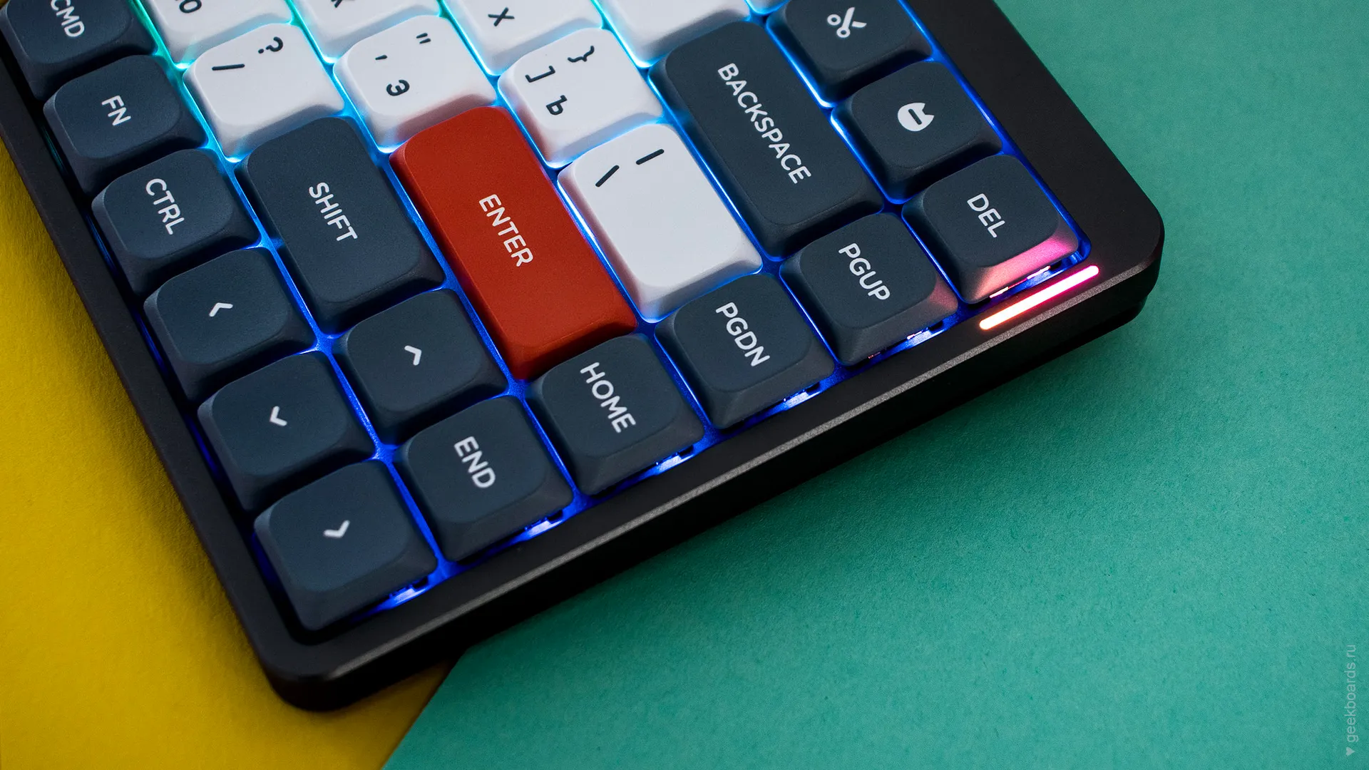 Сочетание 75% формата и низкопрофильных переключателей делает NuPhy мобильной и компактной — клавиатура не займет много места на рабочем столе и ее легко брать с собой.