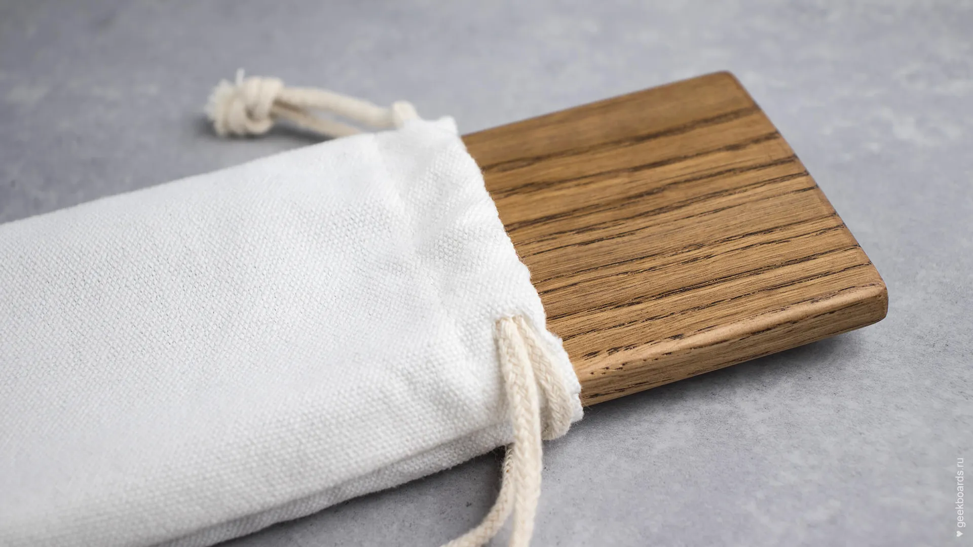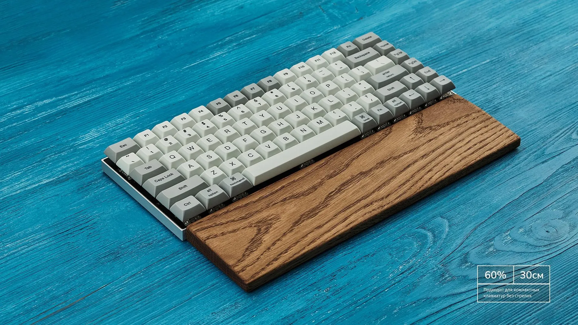 Дубовая подставка под запястья с приятной на ощупь текстурированной поверхностью и прорезиненными ножками.