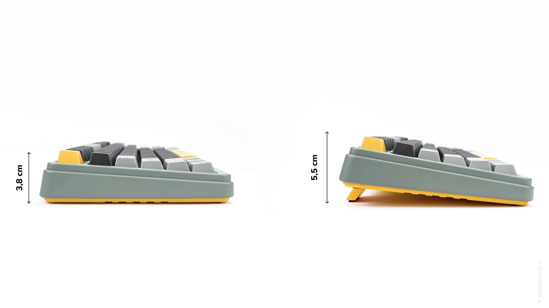 Клавиатуру можно подключить через USB Type-C или Bluetooth 5.0. Беспроводной режим поддерживает подключение трёх устройств одновременно — переключаться между ними можно через Fn + F1/F2/F3.