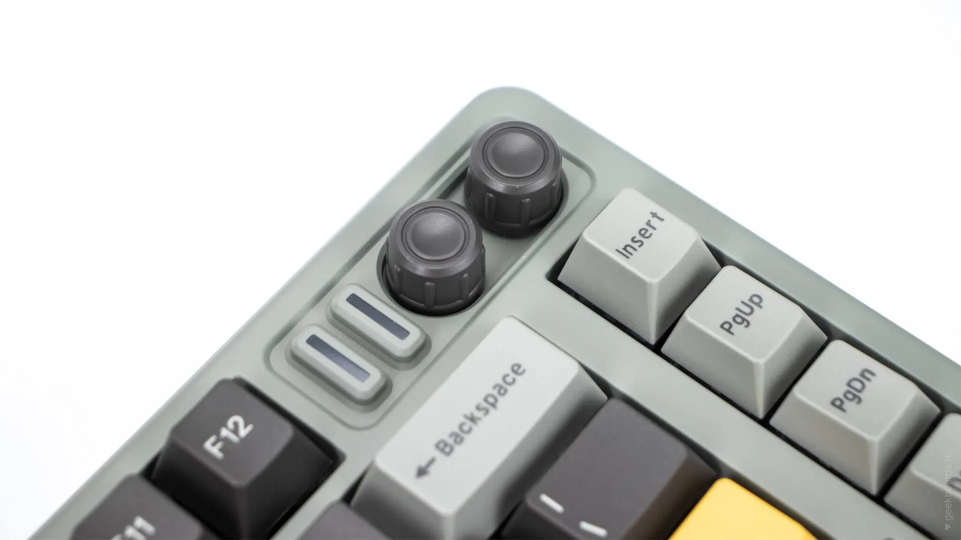 С помощью двух ручек в правом верхнем углу клавиатуры можно регулировать яркость подсветки и громкость на ПК.