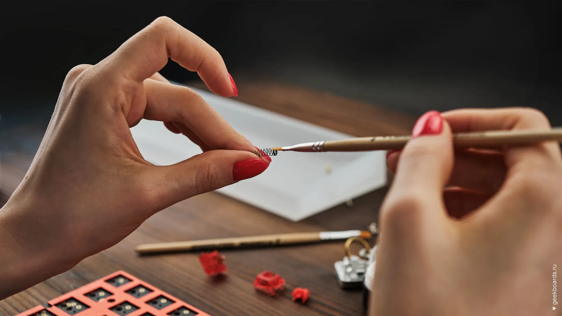 - Для тактильных переключателей, но только если вы точно знаете, что нужно делать. При неопытном использовании переключатель может начать залипать, а тактильные ощущения испортиться. Поэтому рекомендуем посмотреть подробный видеогайд по смазке тактильных переключателей на примере Holy Panda.