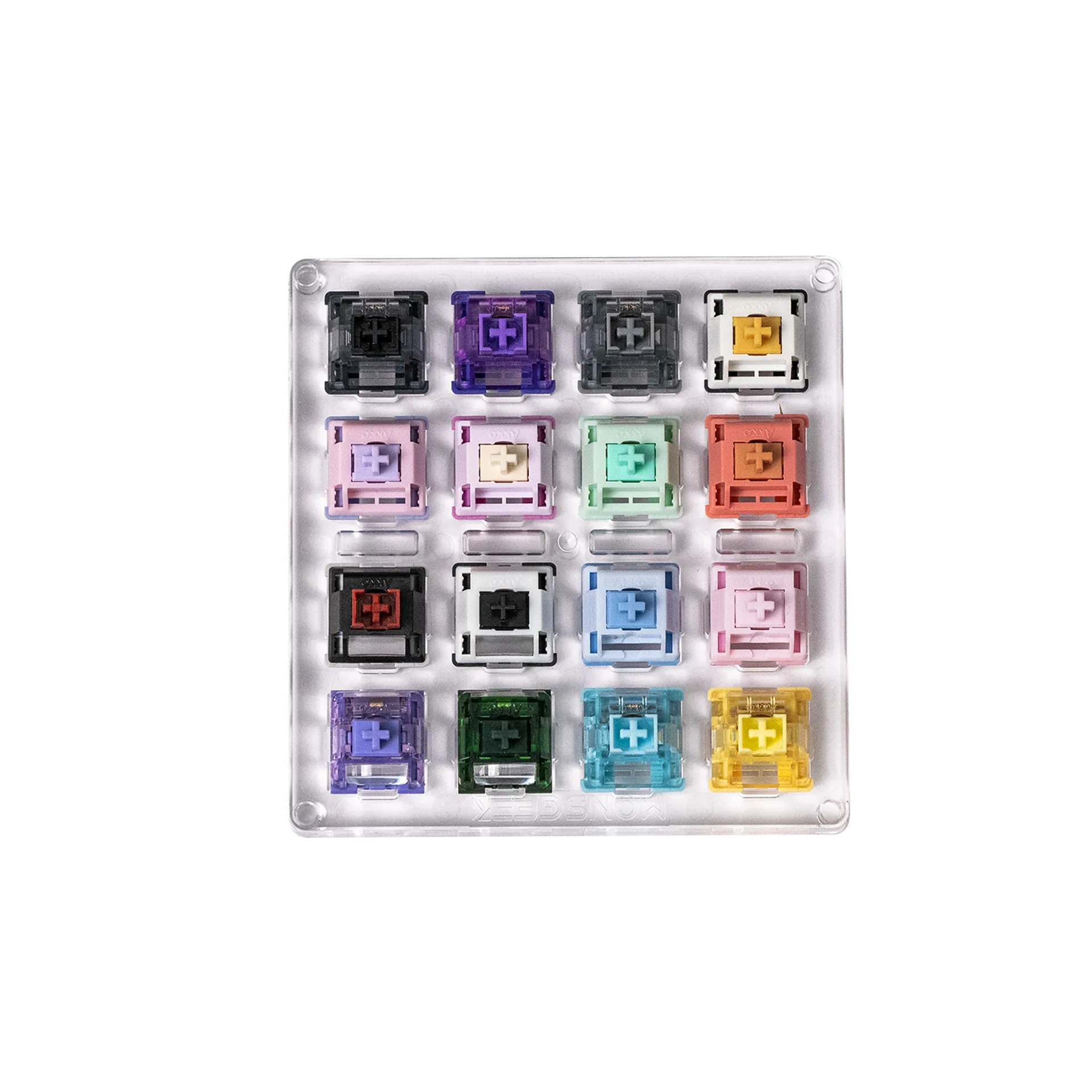 Тестер переключателей Akko 16-Key Switch Tester — удобный инструмент в акриловом корпусе, позволяющий на практике сравнить ощущения и звук разных механических переключателей.