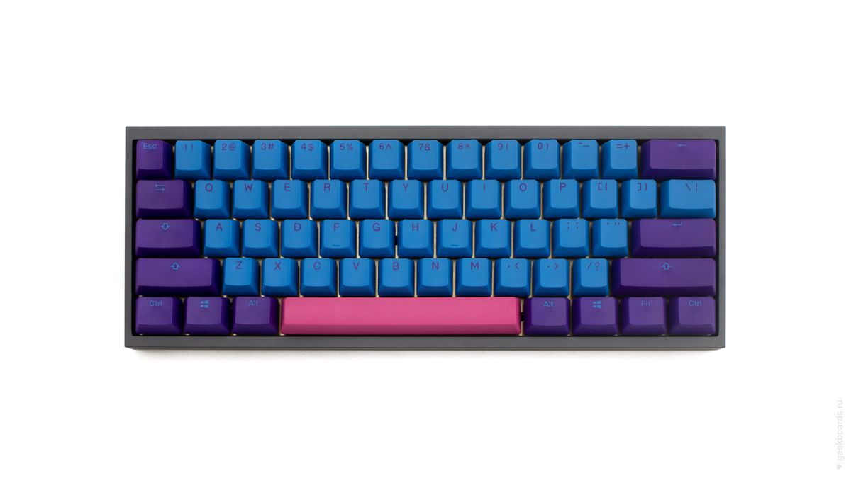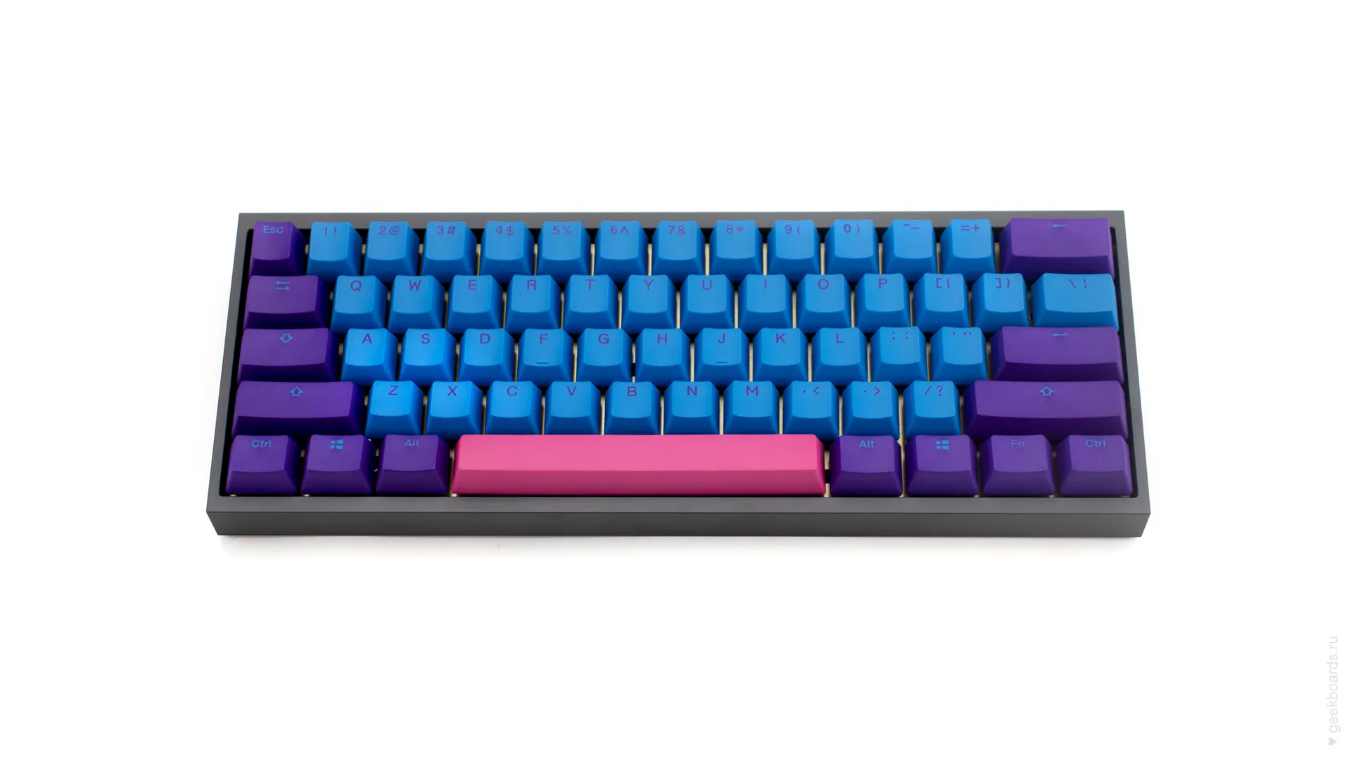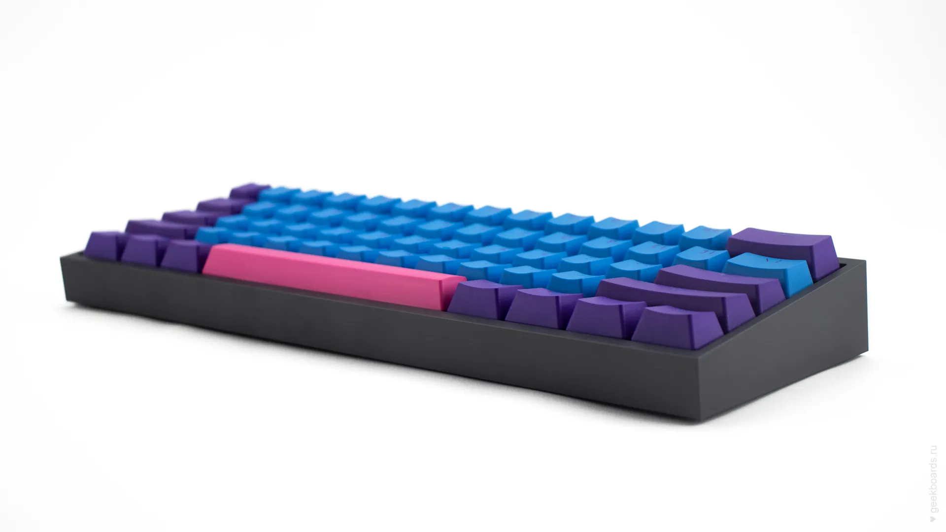 Сногсшибательно красивый набор с OEM профилем и сочной, насыщенной расцветкой, навевающей ассоциации то ли с неоном, то ли со спелыми ягодами (вполне возможно, что это неоновые ягоды). Материалом изготовления послужил высокопрочный пластик PBT с применением doubleshot технологии, что гарантирует клавишам долговечность и надёжность в эксплуатации.