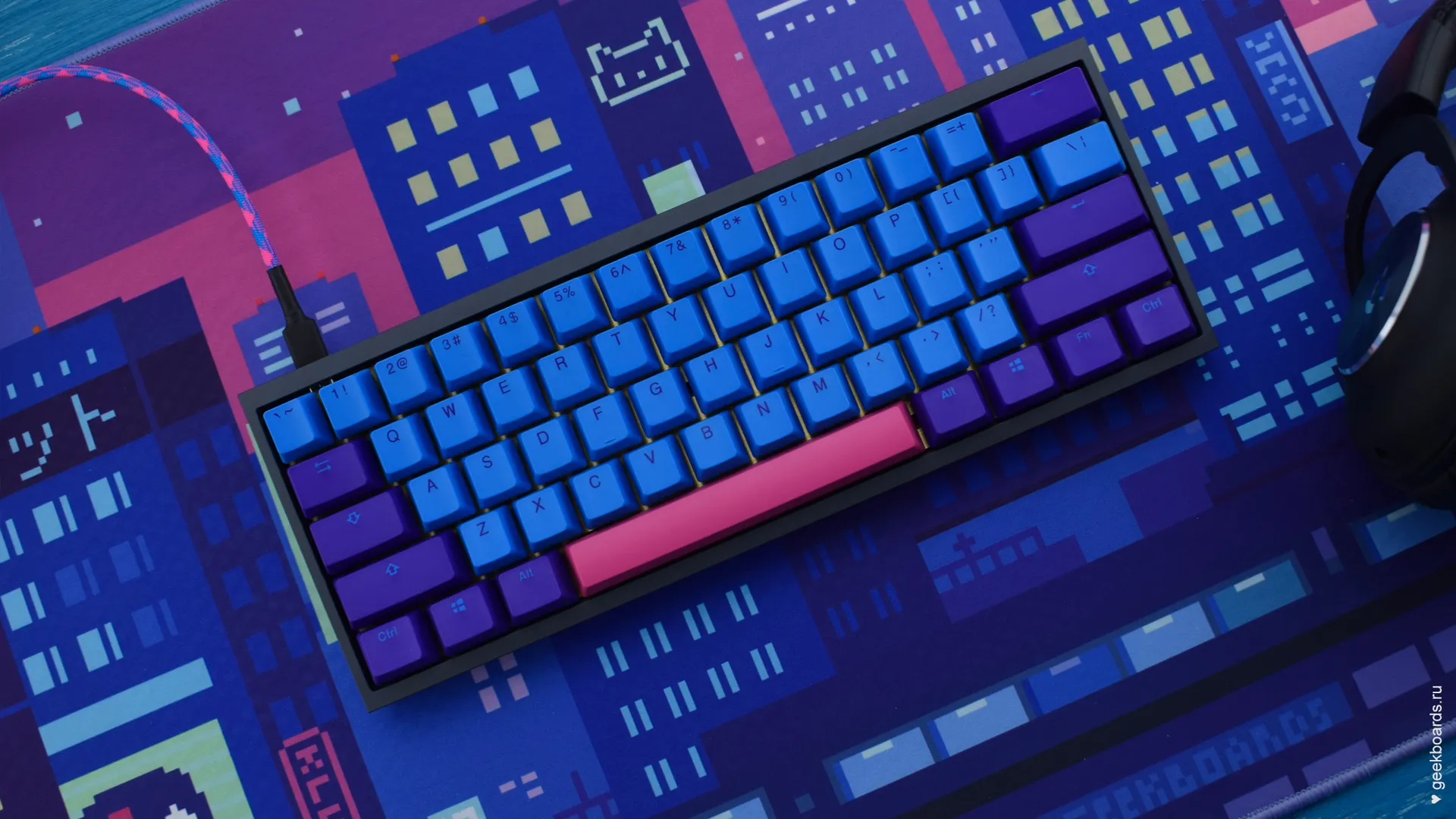 Очередное творение от команды мастеров GeekBoards. Кастомная красавица на переключателях Durock Daybreak Silent, сделанная из качественных деталей и не менее качественно собранная. Стильный внешний вид клавиатуры обязательно привлечёт к себе внимание всех, кто будет просто проходить рядом, а техническое исполнение способно удовлетворить даже самых искушённых. Штучный экземпляр!