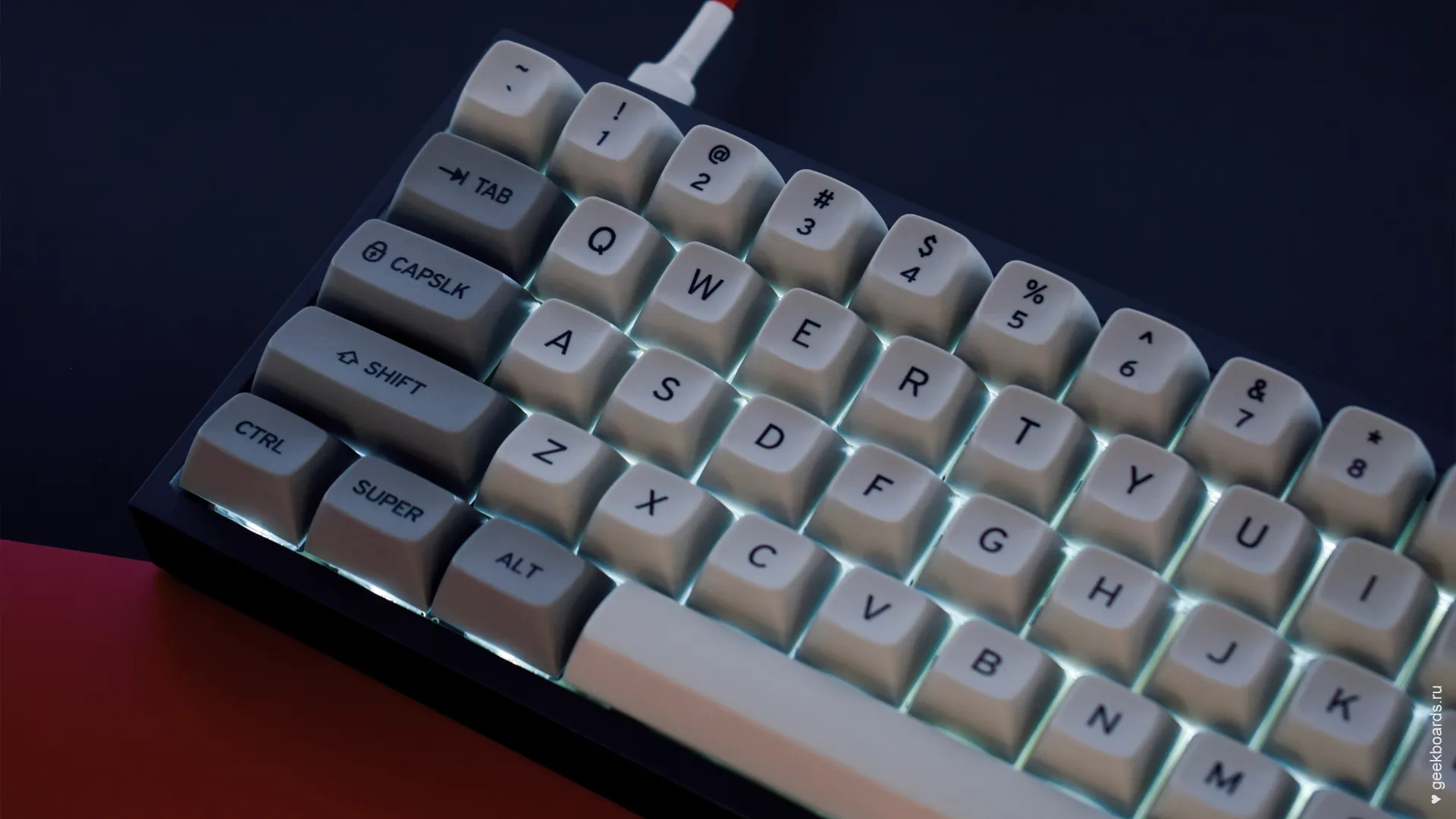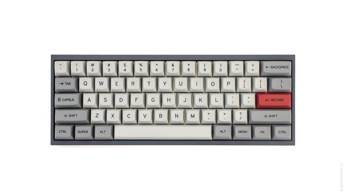 Очередное творение от команды мастеров GeekBoards. Шикарная кастомная клавиатура на переключателях Zeal PC Zilents v2 (62g), сделанная из качественных деталей и не менее качественно собранная. Внешний вид обязательно порадует поклонников ретро, а техническое исполнение способно удовлетворить даже самых искушённых. Штучный экземпляр!
