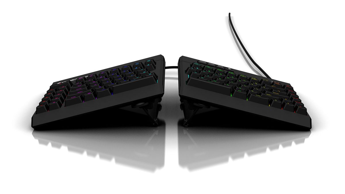 Сплит клавиатуры с возможностью горизонтального наклона позволяют поднять выше стороны рук, на которых расположены большие пальцы. Для рук такое положение является более естественным. Согласно исследованиям, оно уменьшает нагрузку на предплечья и обеспечивает максимальный комфорт, столь важный для длительных игровых сессий или работы. Необходимость в перерывах уменьшается, а скорость реакции возрастает.