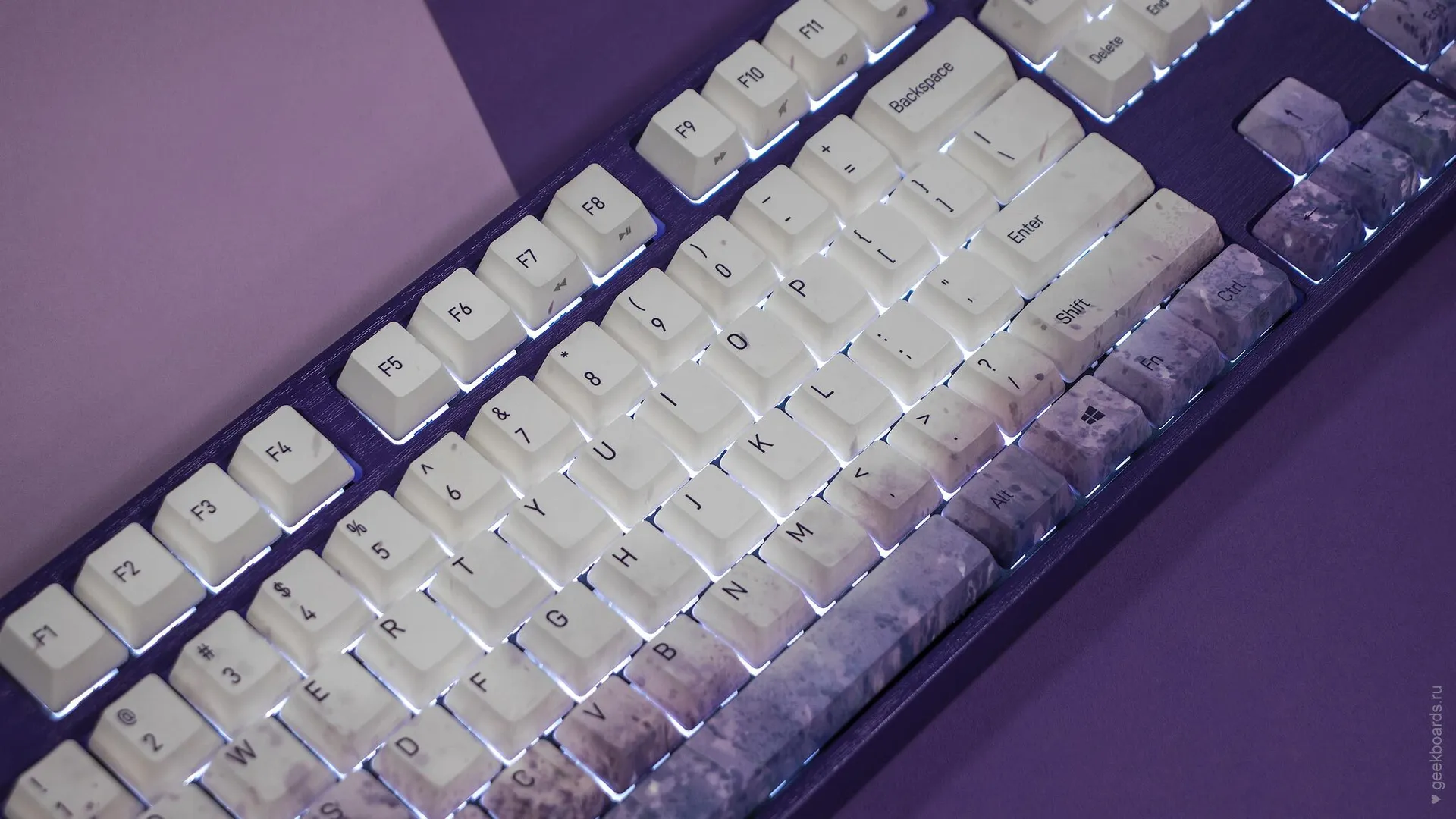 Сочетание стабилизаторов и смазки делает ход клавиш enter, space, shift, backspace равномерным и плавным.
