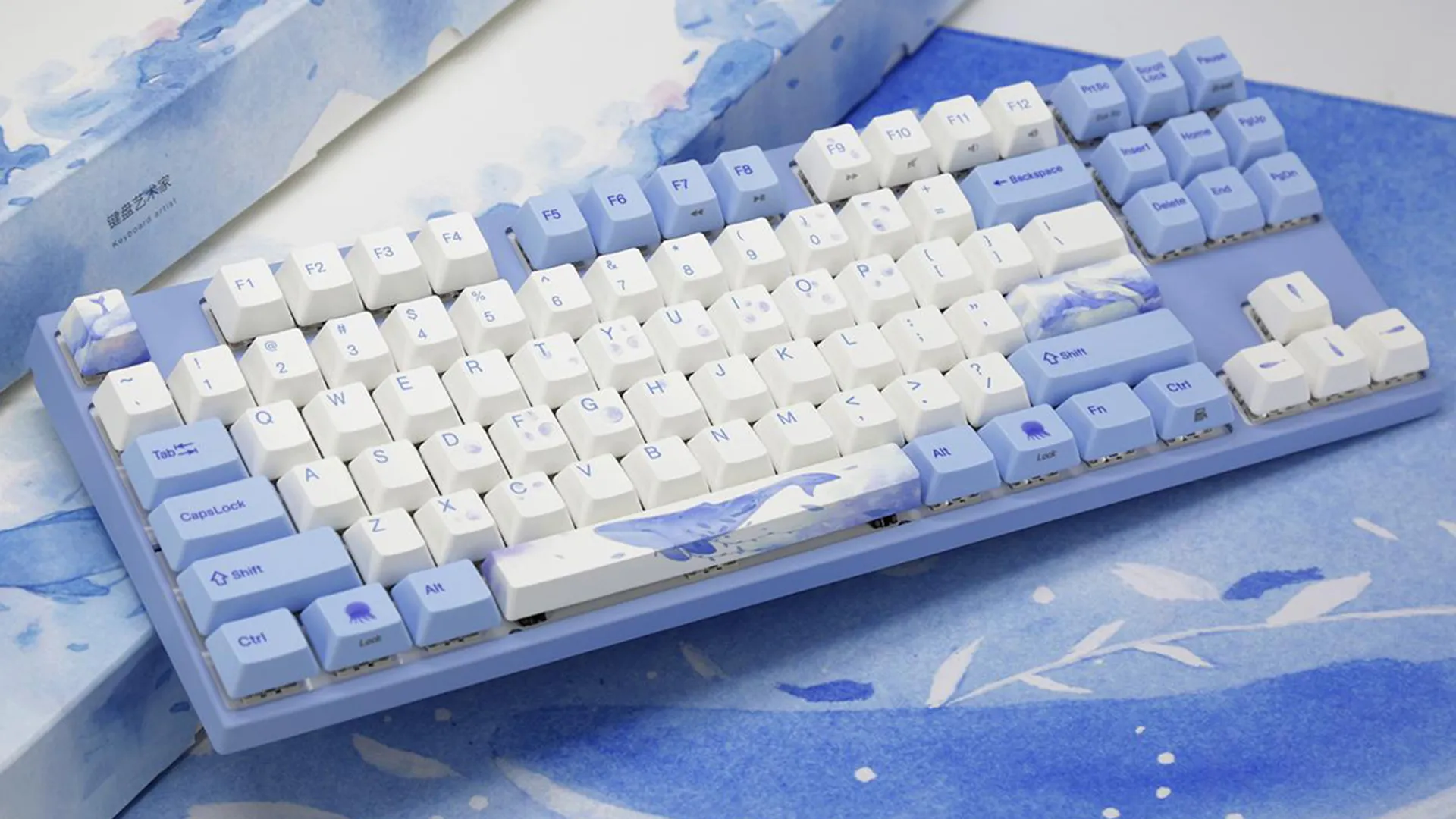 Дизайн на кейкапах Sea Melody рассказывает историю о гармонии жизни: умирая, киты падают на дно и продолжают служить другим жителям океана десятки лет. Так Varmilo передали не только цвет, но и дух бескрайних вод.