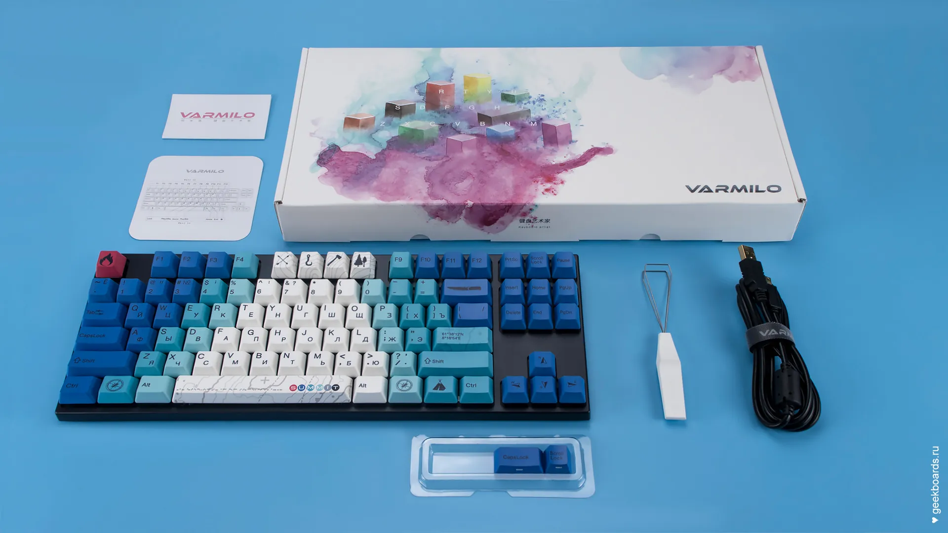 - Varmilo wire keycap puller – позволит легко снять клавиши с клавиатуры;