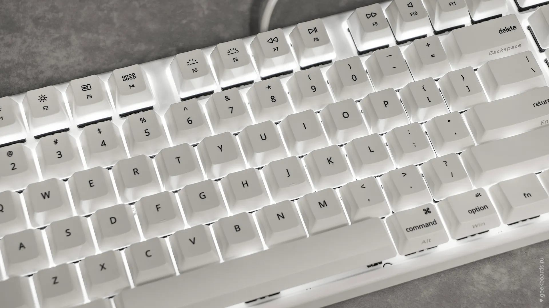 Сочетание стабилизаторов и смазки делает ход клавиш enter, space, shift, backspace равномерным и плавным.