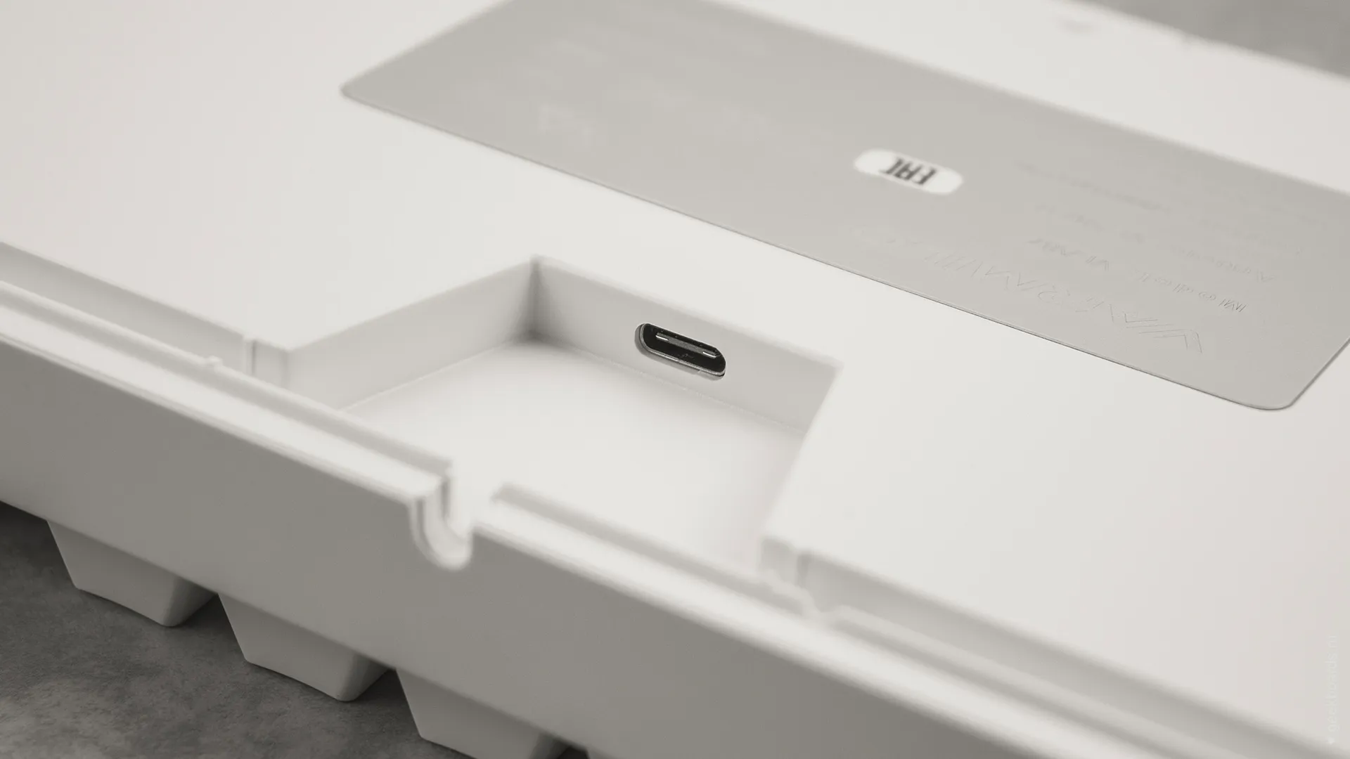 В обновлённой версии клавиатура получила USB Type-C порт вместо Mini-USB. Он спрятан в центре под корпусом, а на самой клавиатуре имеются центральная и две боковые канавки под кабель.