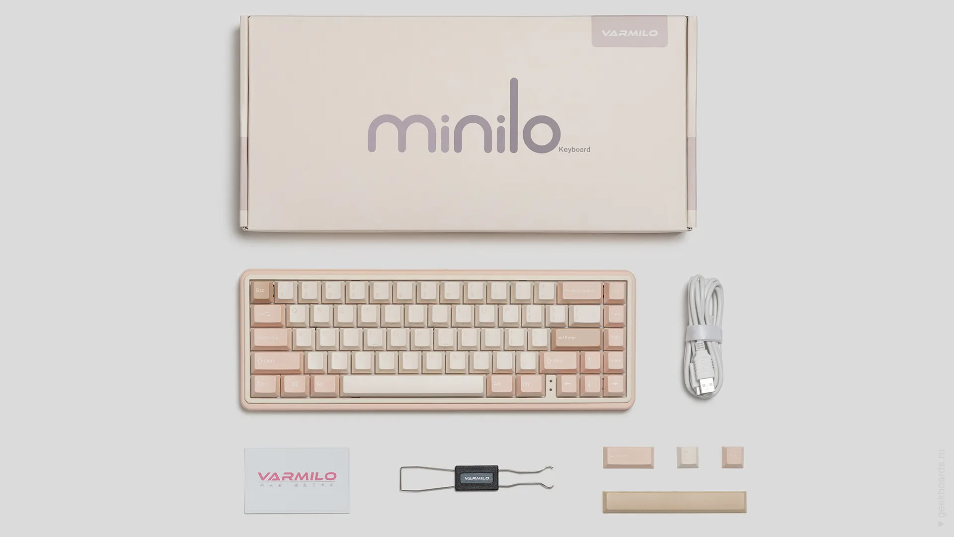 В комплекте есть дополнительные кейкапы для пробела, Esc, «~» и Enter.