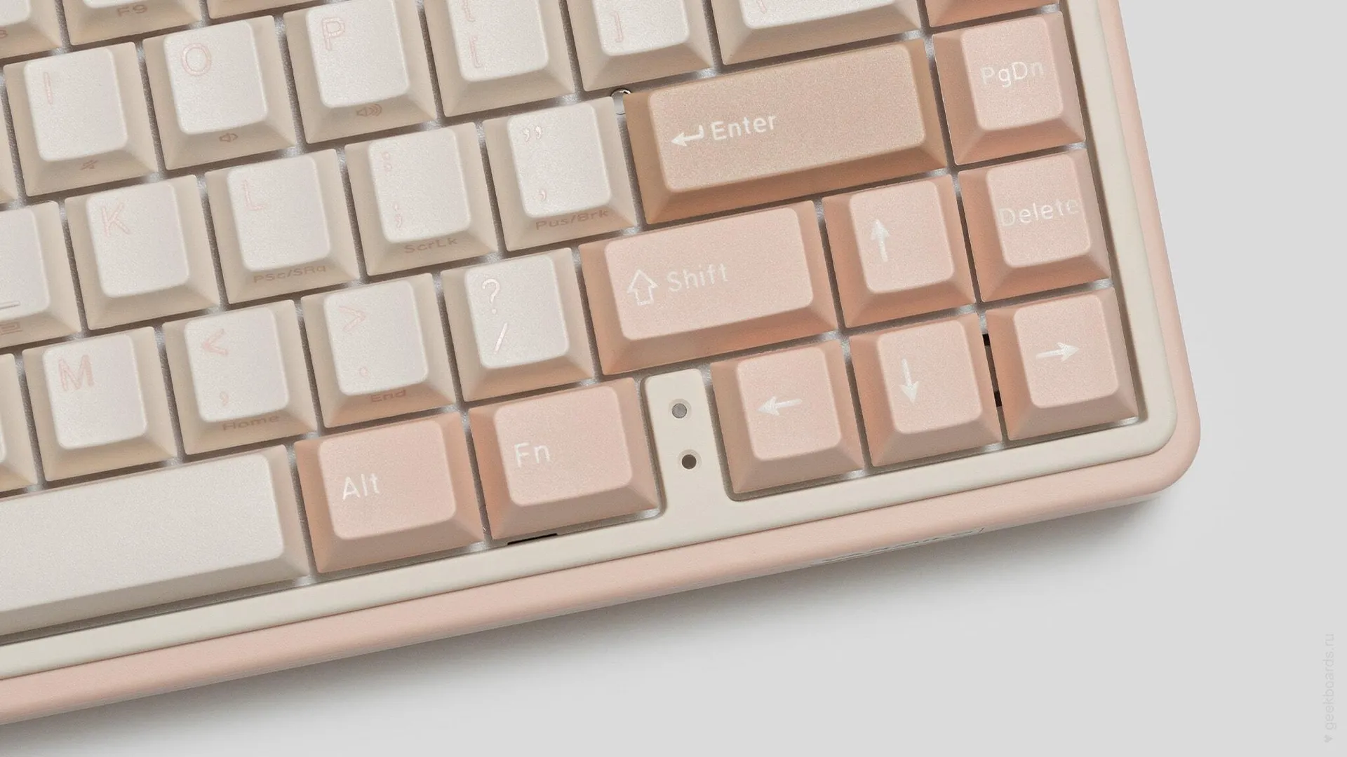Сочетание стабилизаторов и смазки делает ход клавиш enter, space, shift, backspace равномерным и плавным.