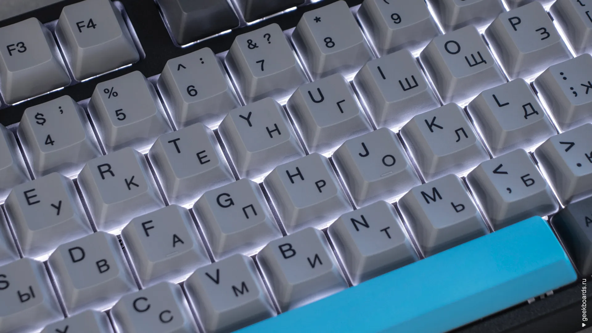 Сочетание стабилизаторов и смазки делает ход клавиш enter, space, shift, backspace равномерным и плавным.