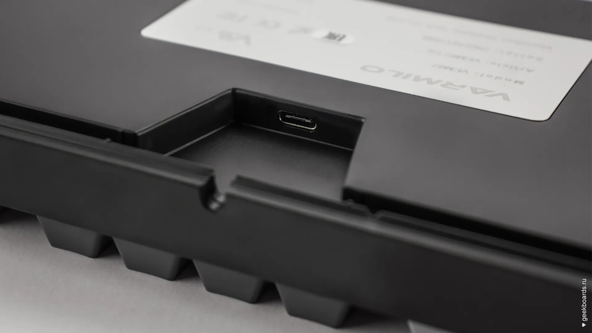В обновлённой версии клавиатура получила USB Type-C порт вместо Mini-USB. Он спрятан в центре под корпусом, а на самой клавиатуре имеются центральная и две боковые канавки под кабель.