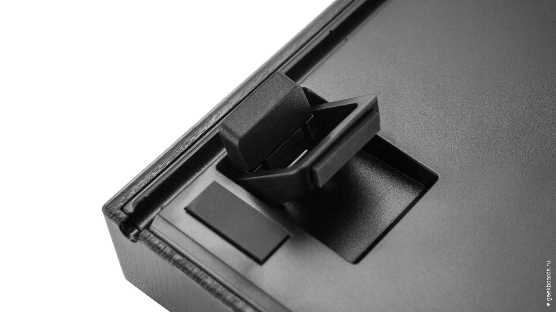 В обновлённой версии клавиатура получила USB Type-C порт вместо Mini-USB. Он спрятан в центре под корпусом, а на самой клавиатуре есть центральная и две боковые канавки под кабель.