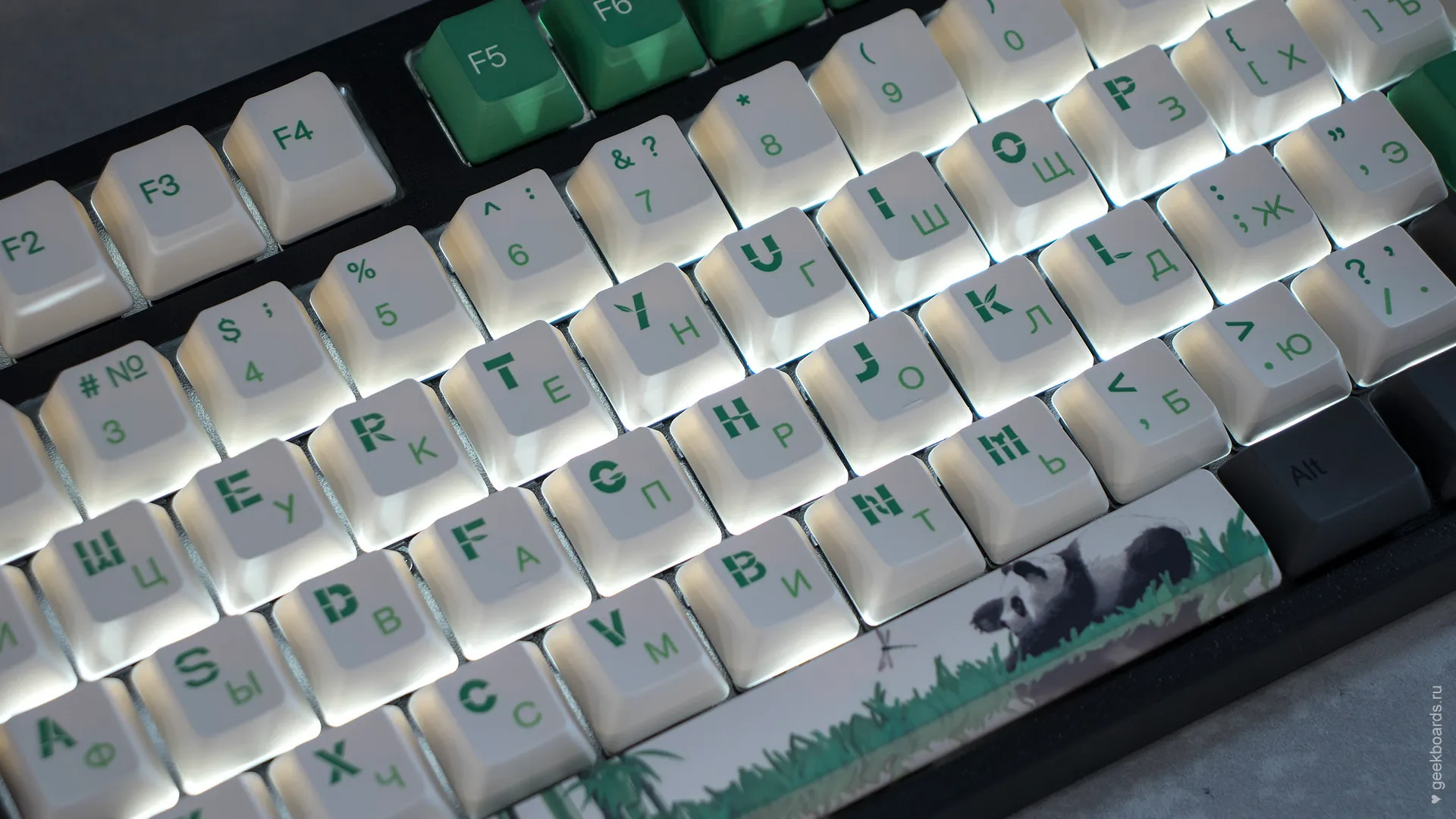 Если панда — символ удачи, то с этой клавиатурой вы обречены на успех во всех делах. А зеленый цвет капов, как лучший зеленый чай из провинции Чжэцзян, сделает вас непобедимым.