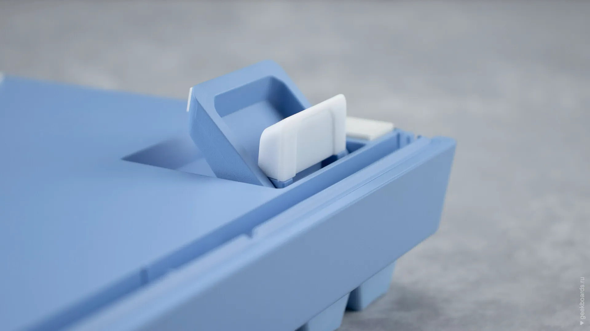Специальные сокеты позволяют менять переключатели без паяльника. Для этой клавиатуры подходят стандартные Cherry-подобные переключатели.