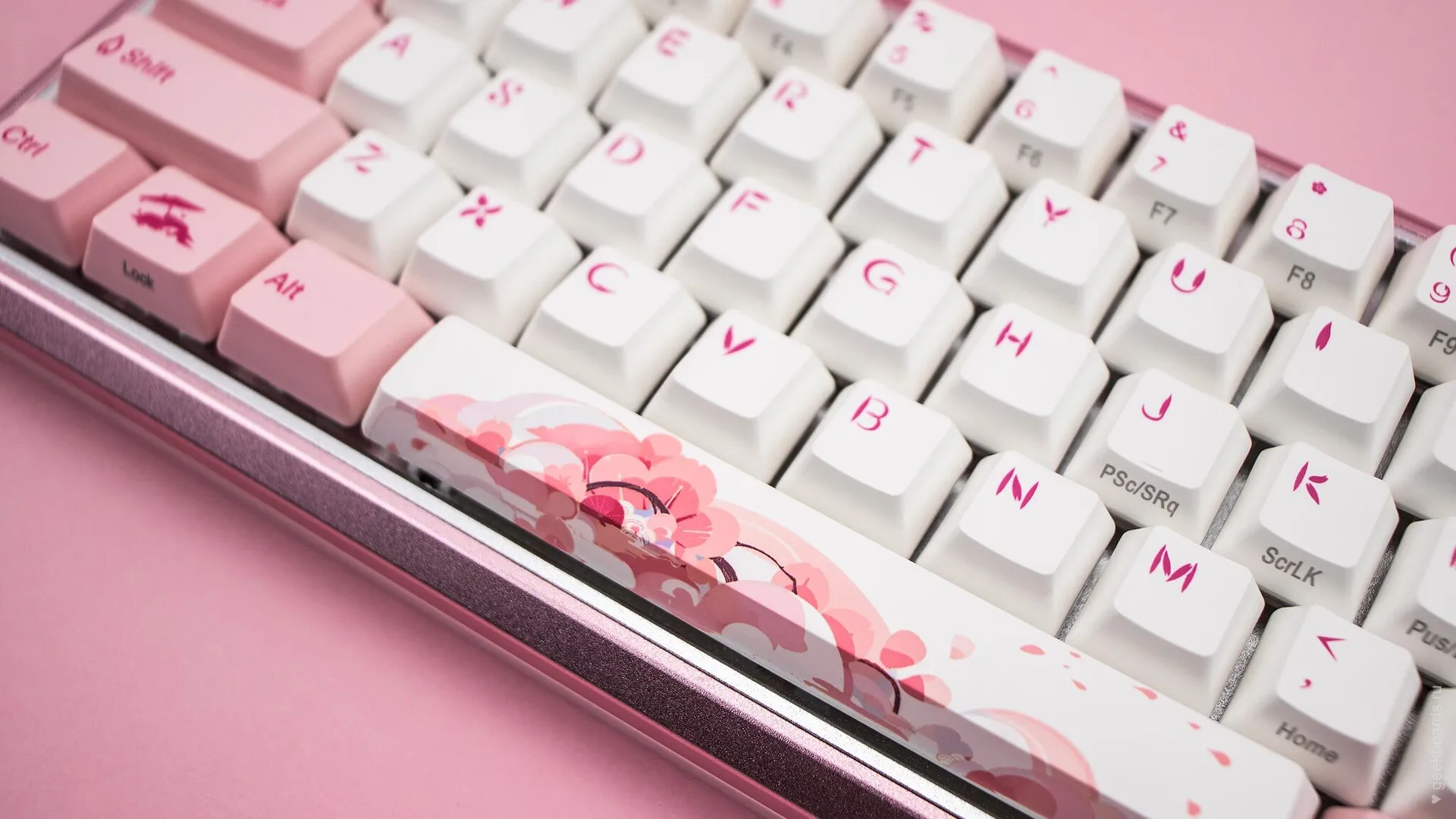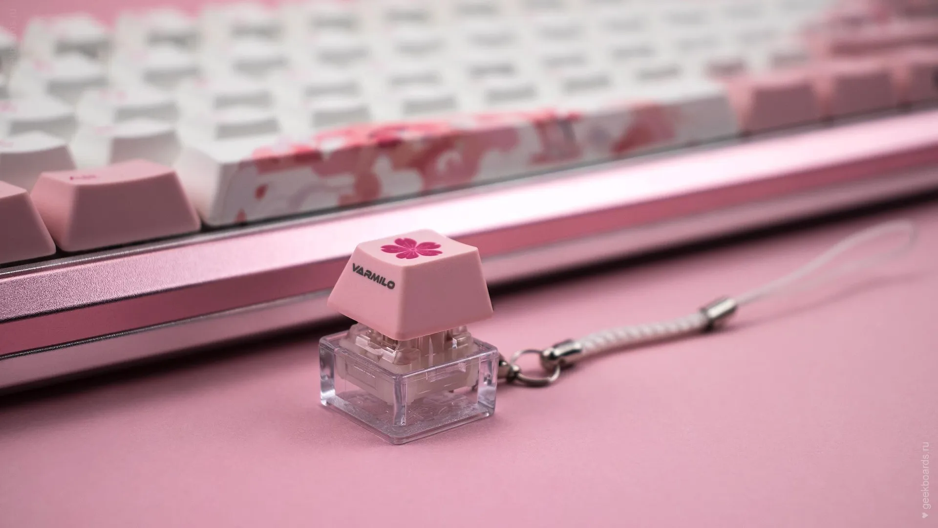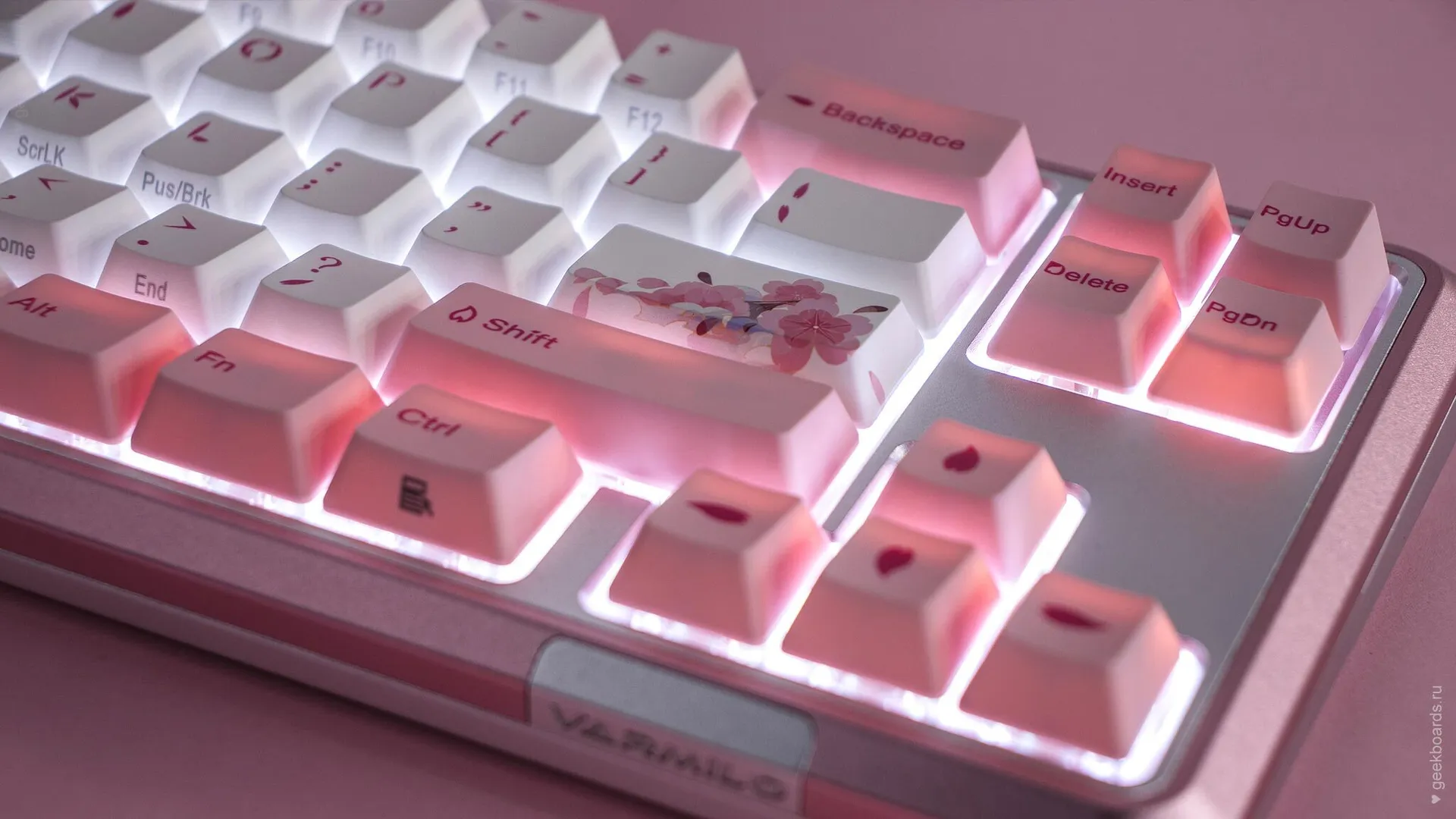 Кейкапы цвета баблгам, россыпь розовых цветов и восходящее солнце. Цветение сакуры — символ красоты и быстротечности жизни, который Varmilo увековечили в своем дизайне. Так зародилась любовь к созданию клавиатурных шедевров.