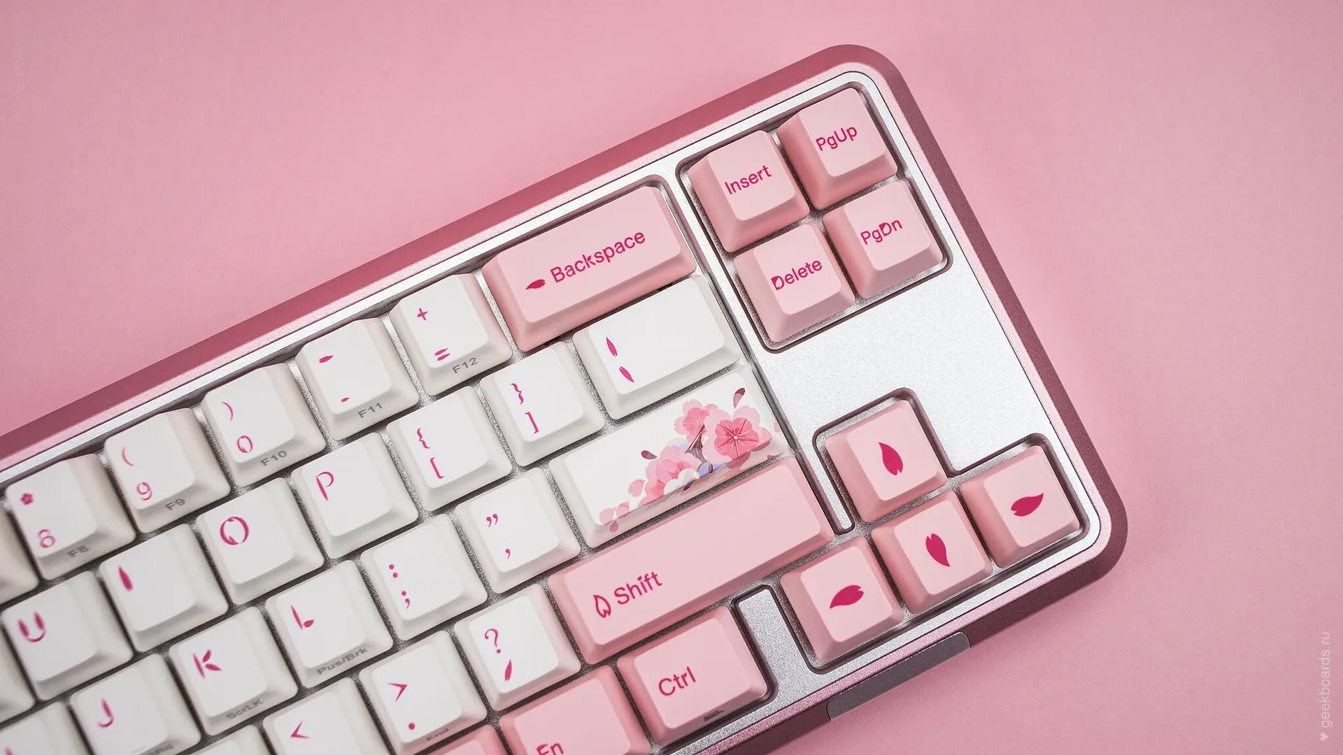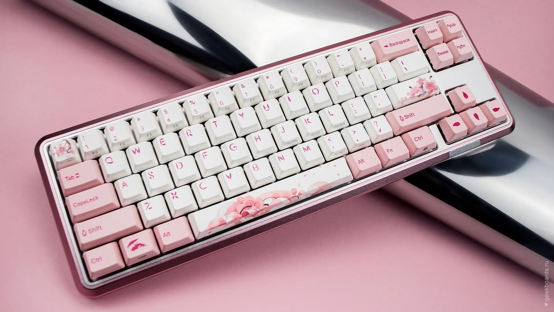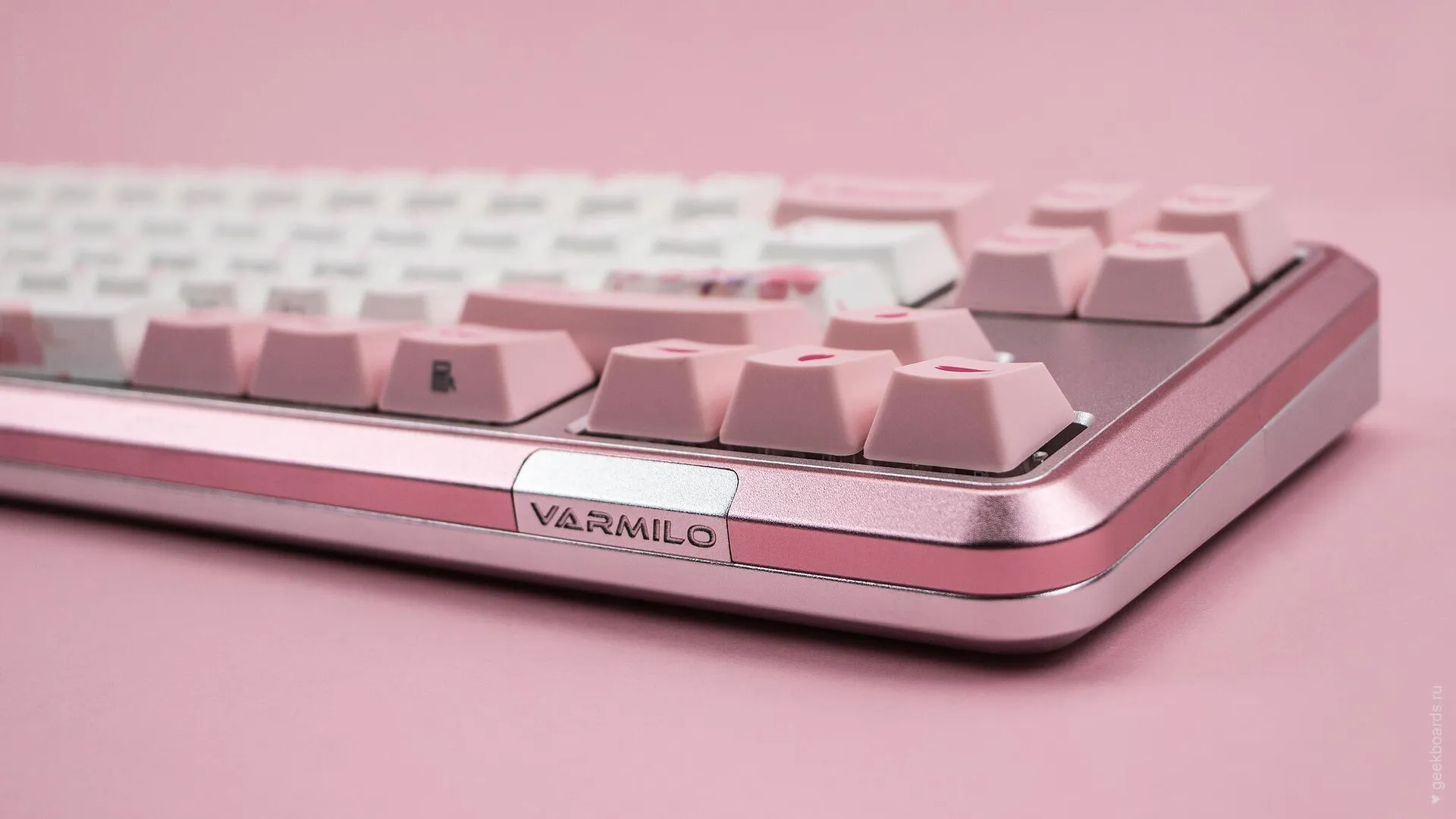 Кейкапы цвета баблгам, россыпь розовых цветов и восходящее солнце. Цветение сакуры — символ красоты и быстротечности жизни, который Varmilo увековечили в своем дизайне. Так зародилась любовь к созданию клавиатурных шедевров.