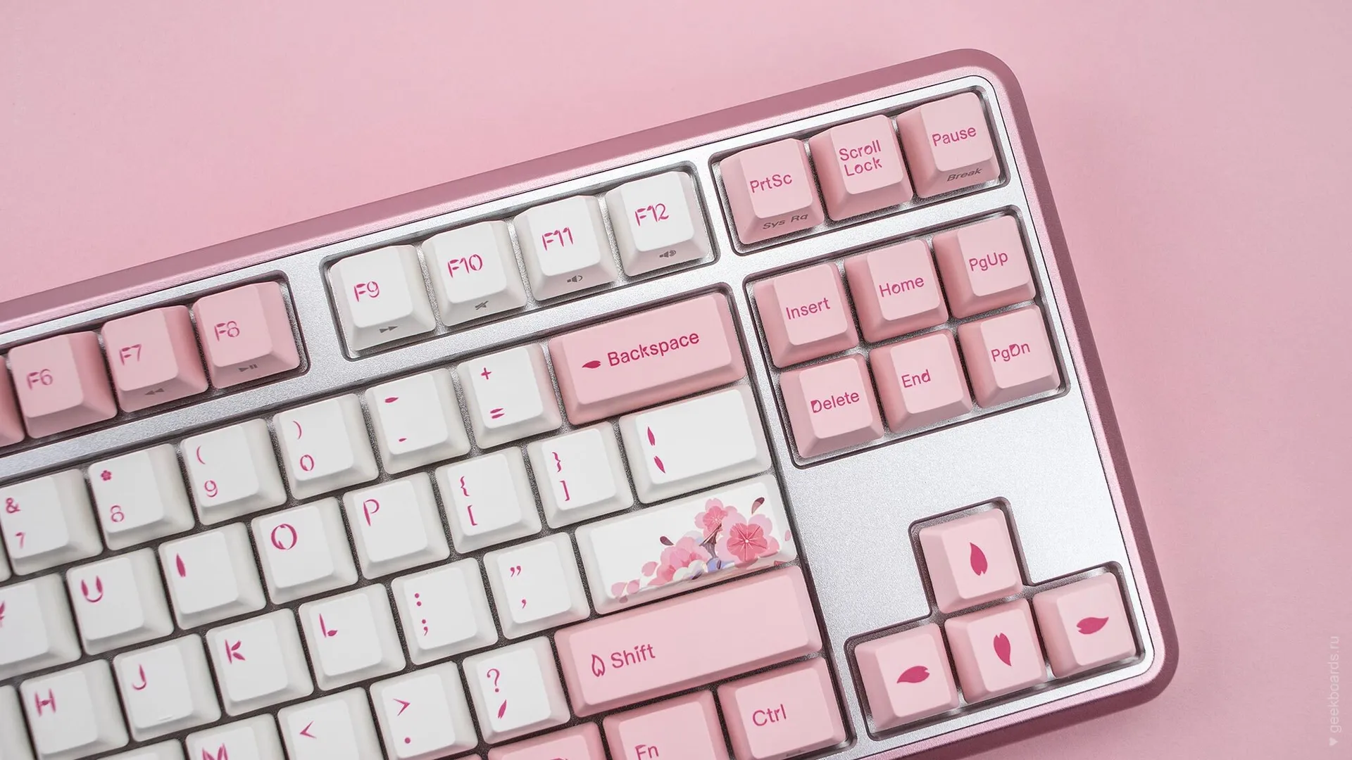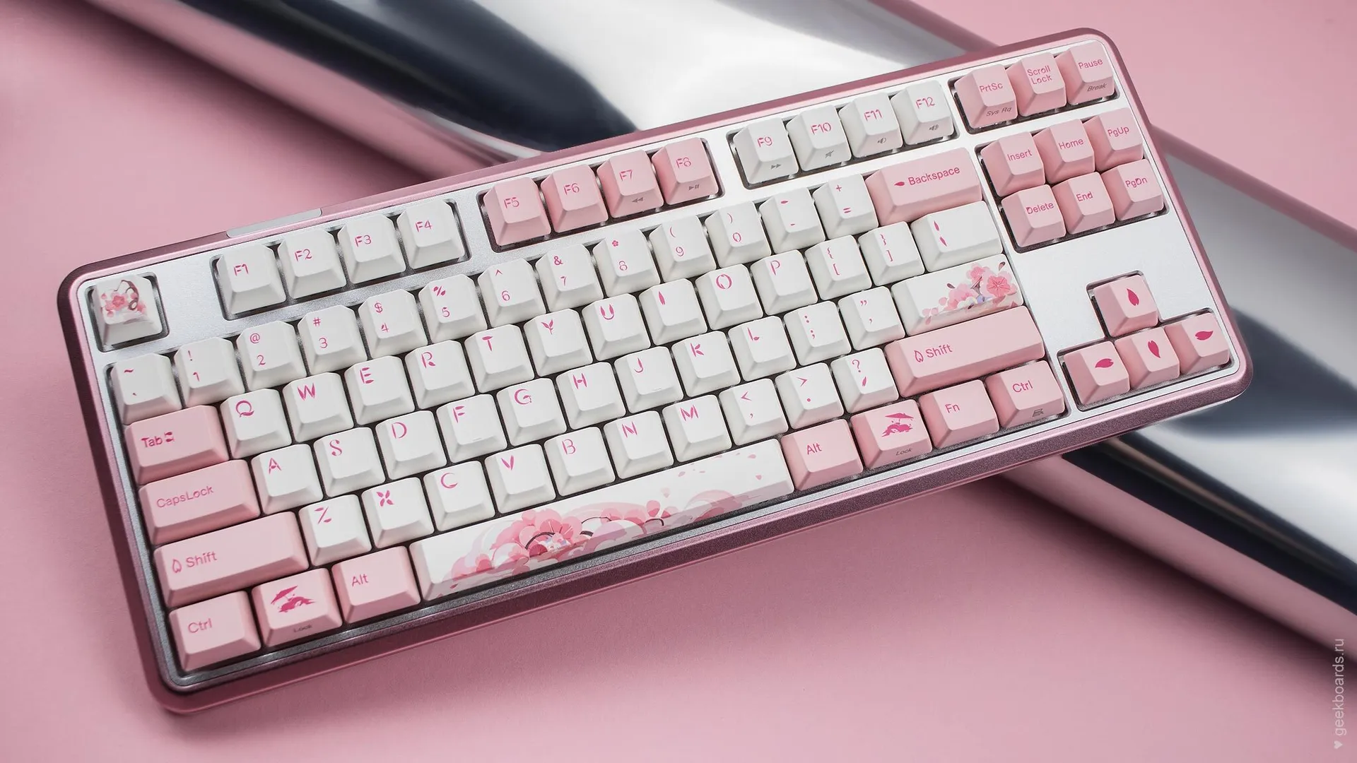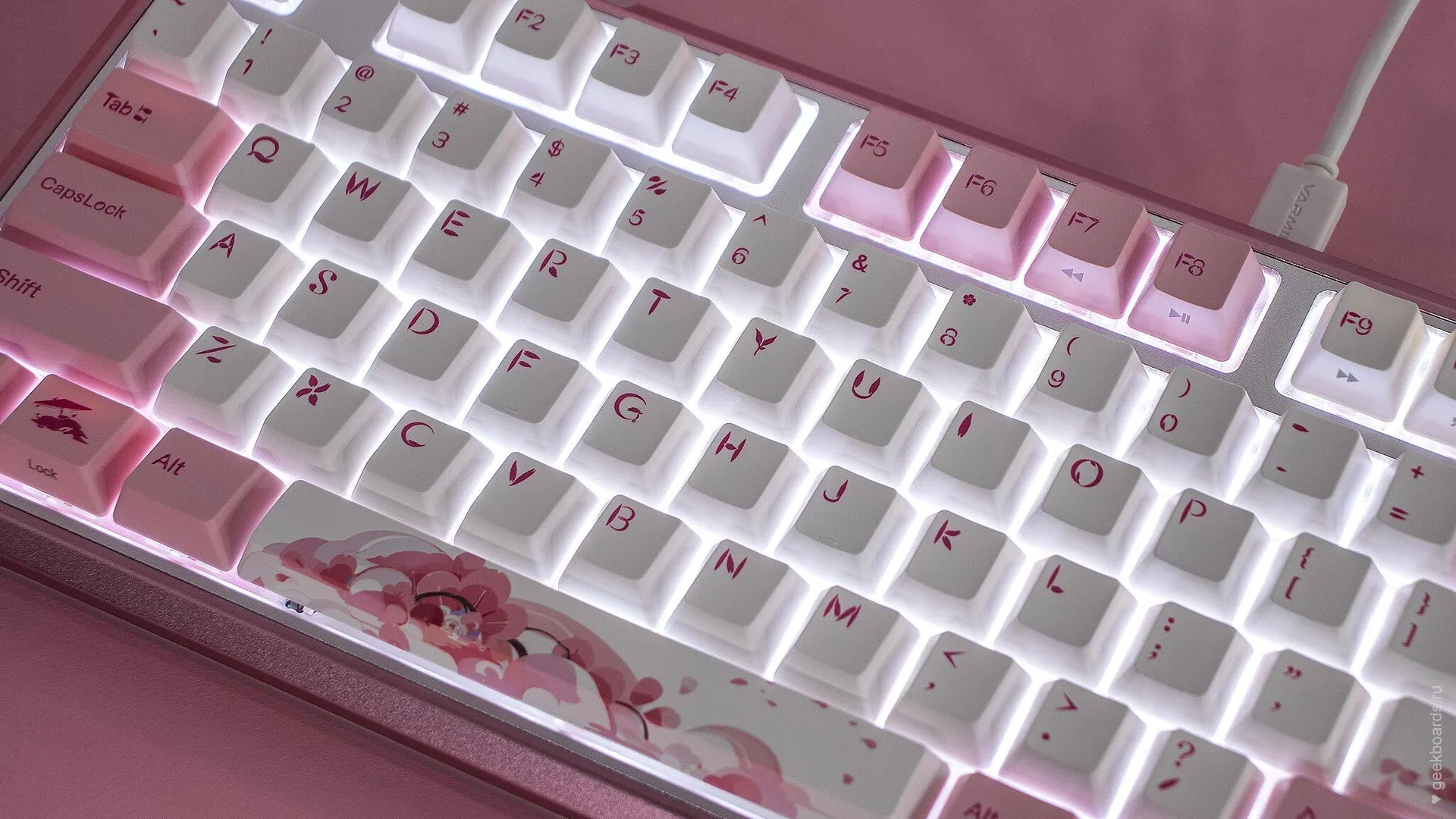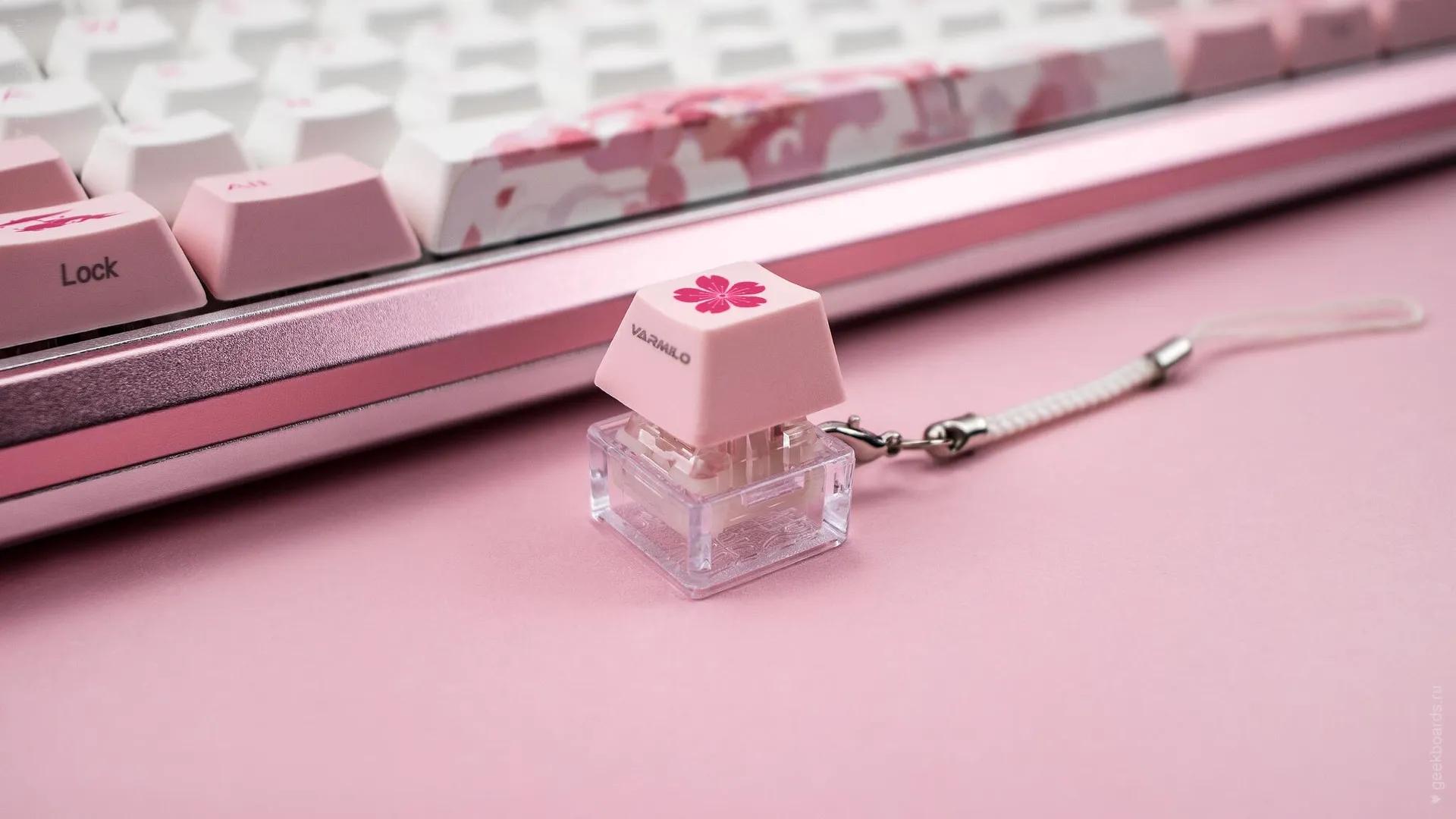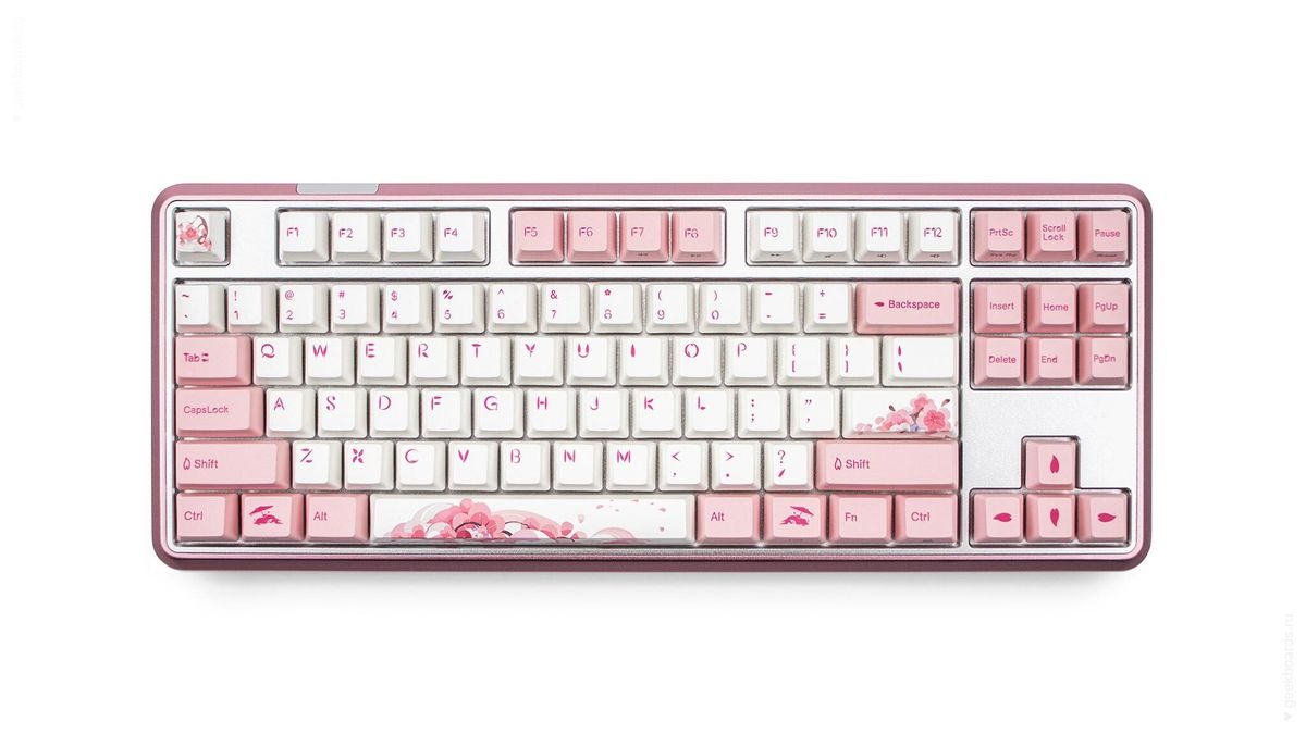 Кейкапы цвета баблгам, россыпь розовых цветов и восходящее солнце. Цветение сакуры — символ красоты и быстротечности жизни, который Varmilo увековечили в своем дизайне. Так зародилась любовь к созданию клавиатурных шедевров.