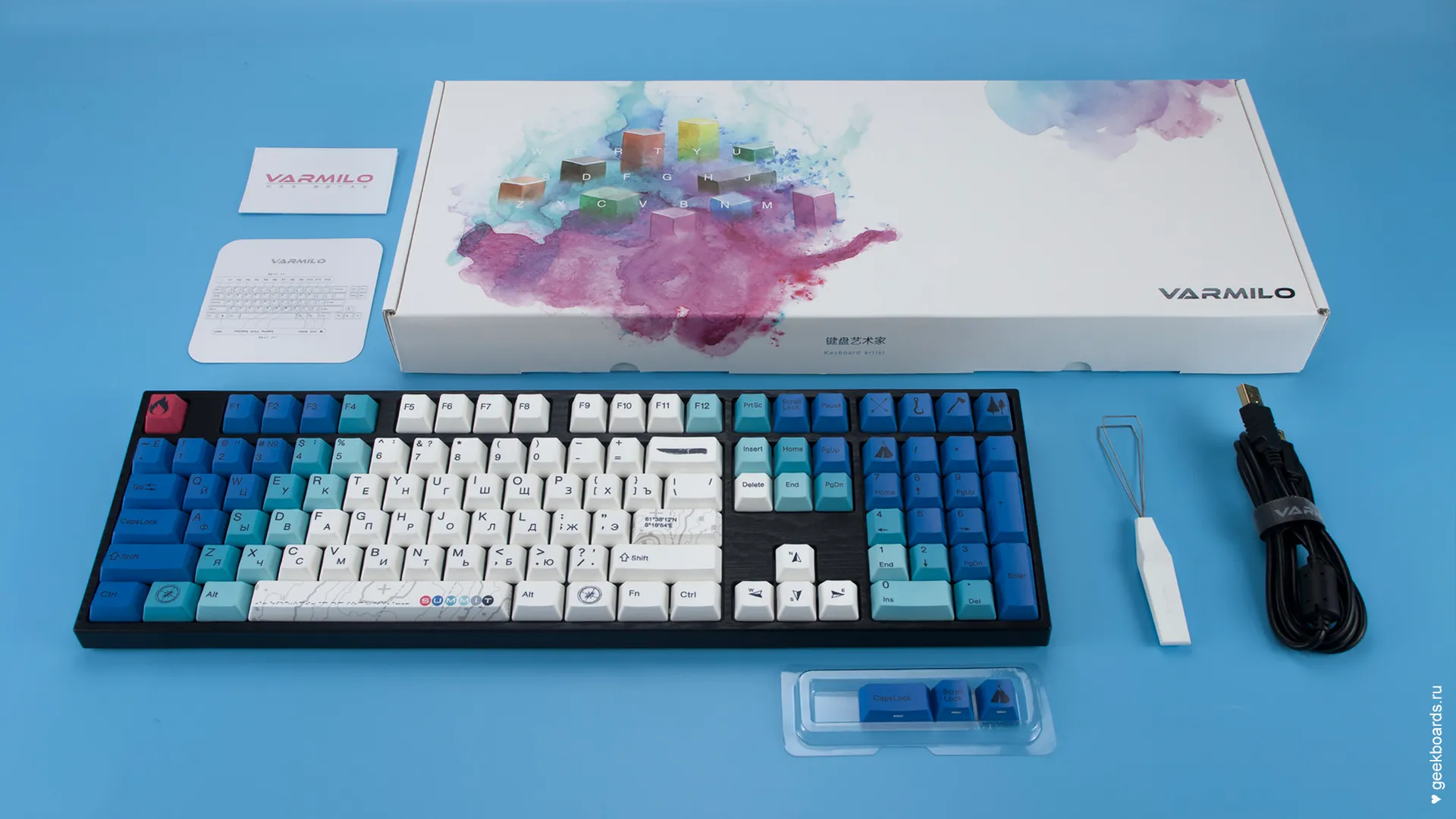 - Varmilo wire keycap puller – позволит легко снять клавиши с клавиатуры;