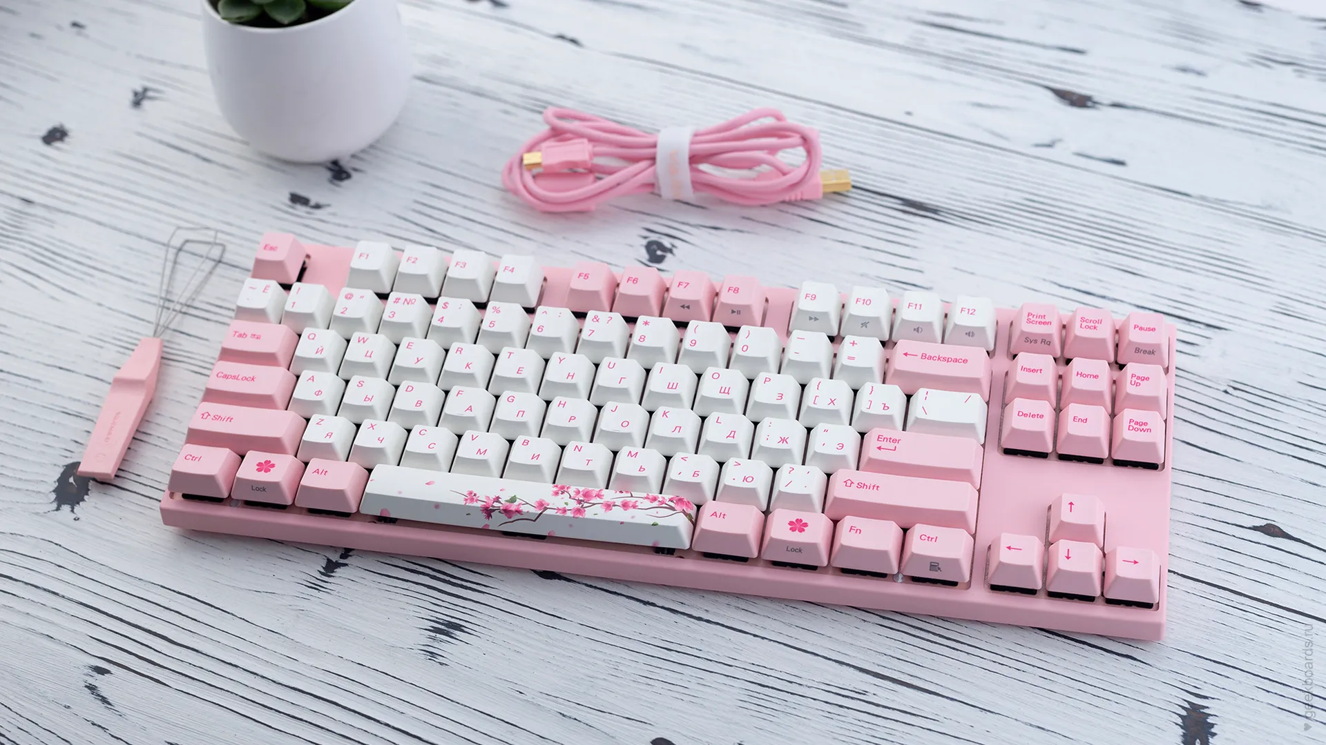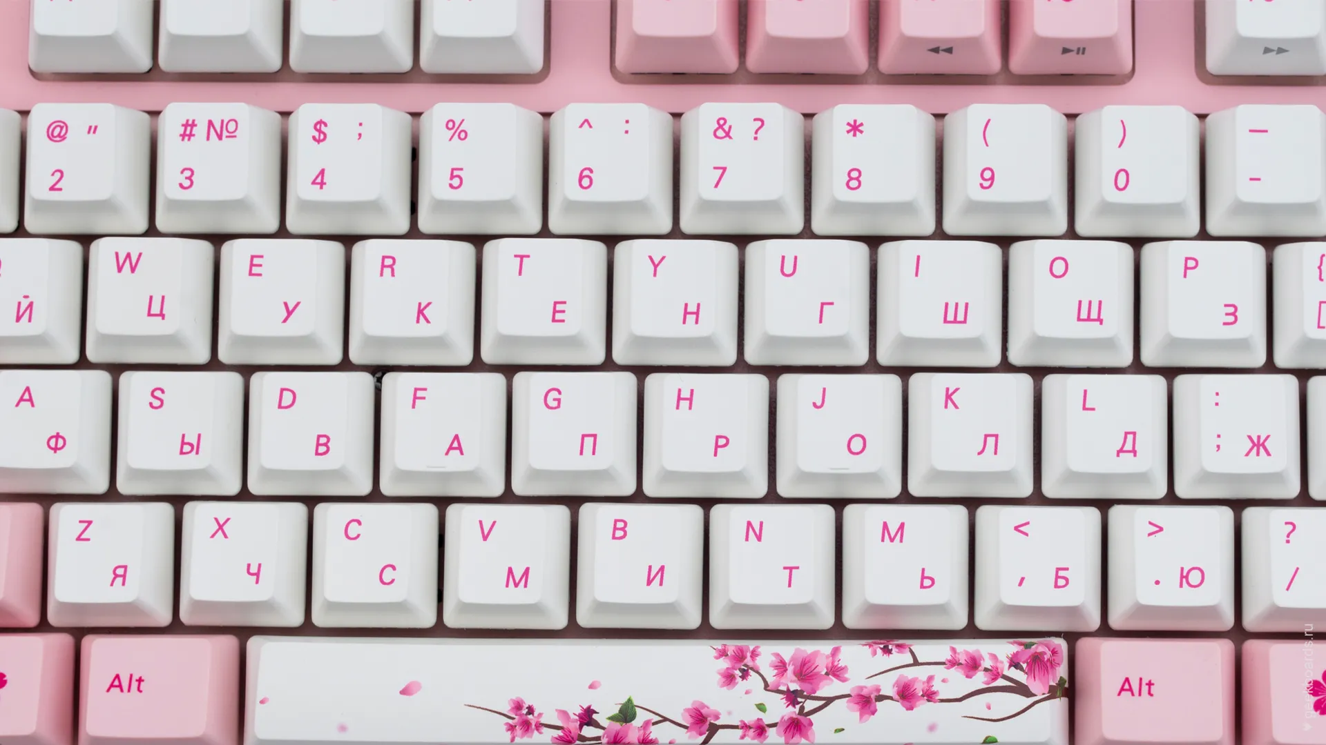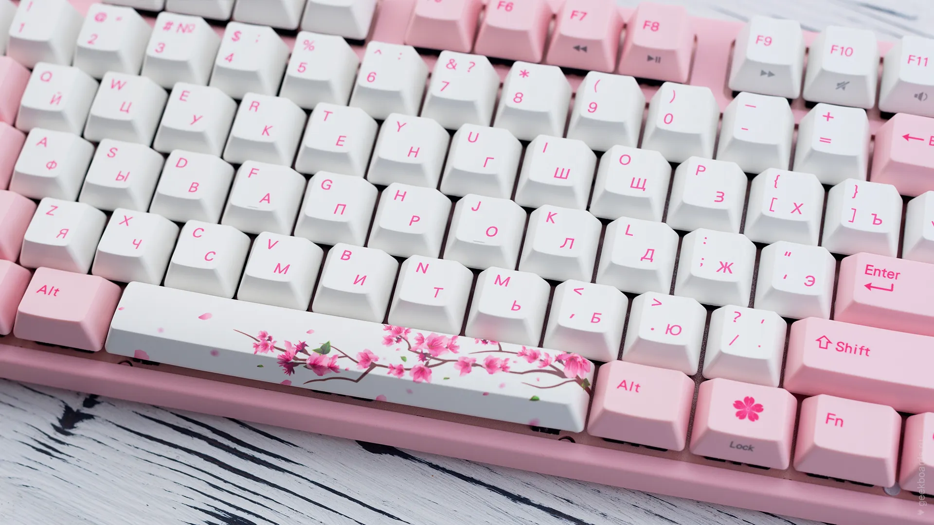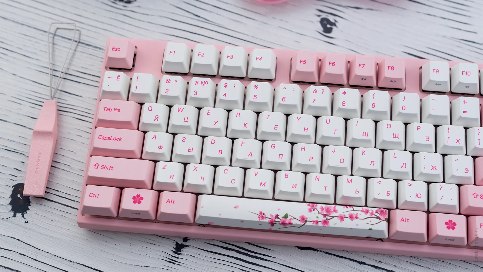 Кейкапы цвета баблгам, россыпь розовых цветов и восходящее солнце. Цветение сакуры - символ красоты и быстротечности жизни, который Varmilo увековечили в своем дизайне. Так зародилась любовь к созданию клавиатурных шедевров.