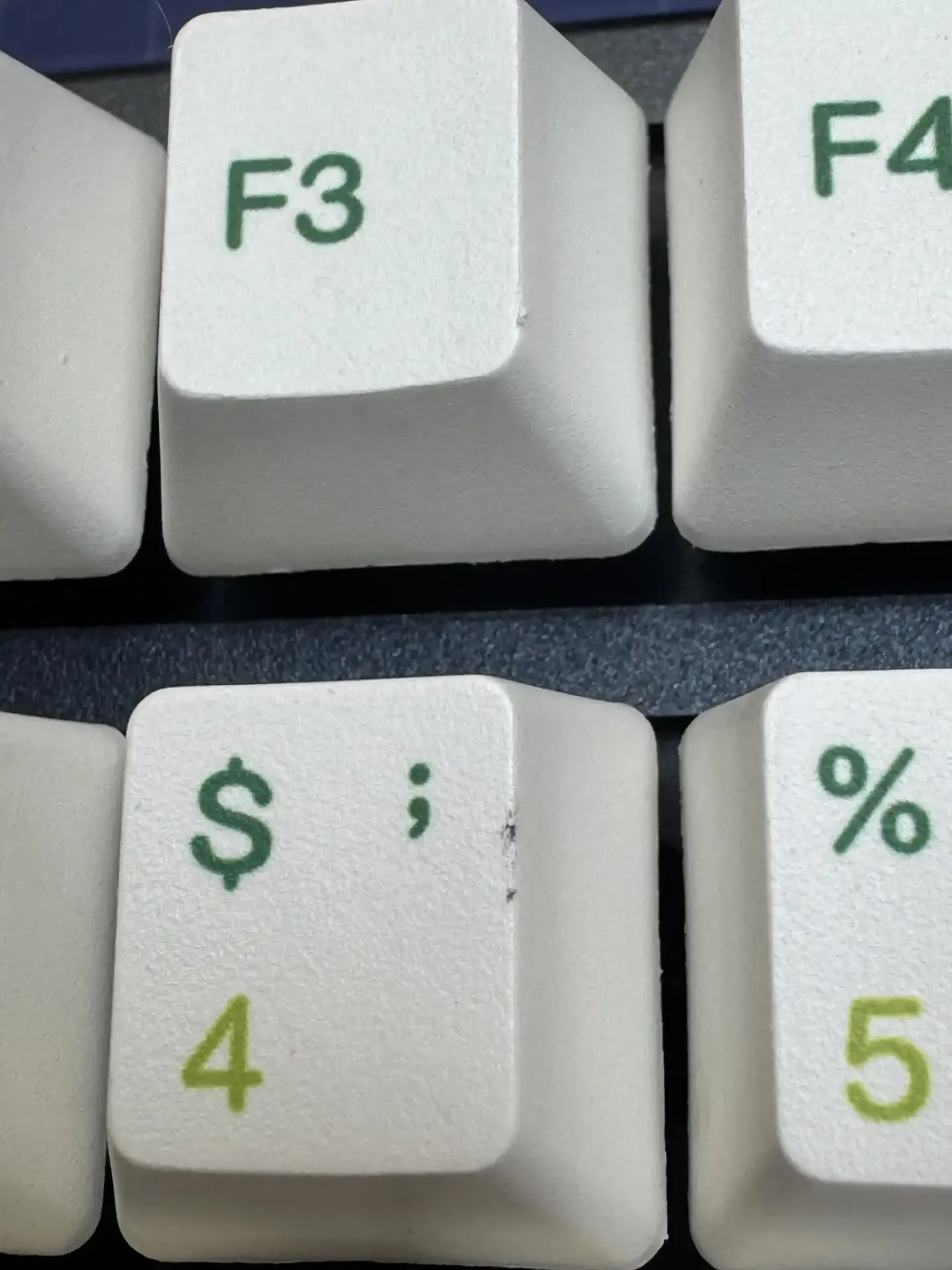 - Хорошее состояние, небольшие потертости на задней крышке корпуса и ножках, некоторые кейкапы имеют впадины, небольшой шайн на пробеле, следы ожога на капе "4", скол на "f3" ;