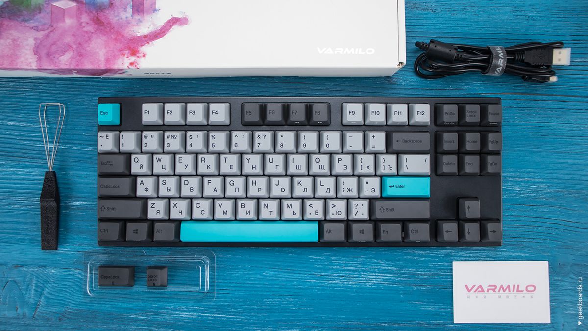 - Varmilo wire keycap puller – позволит легко снять клавиши с клавиатуры;