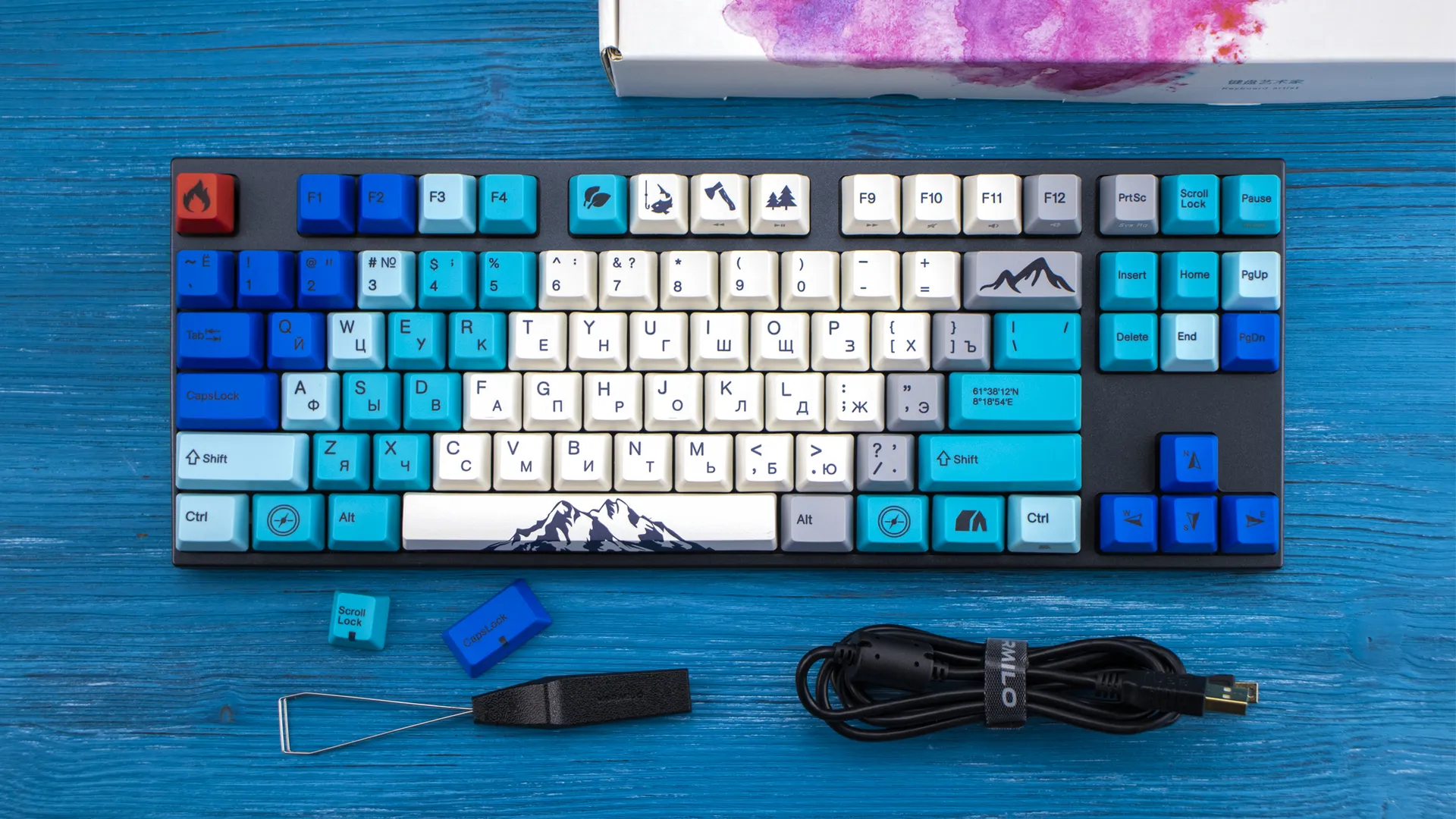 Механическая клавиатура Varmilo VA87M Summit на переключателях Cherry MX Speed Silver. Была в использовании пол года. Вернули по браку, заменили плату, работает отлично. Есть коцка на передней части корпуса около пробела и на задней части корпуса. На пробеле следы от ручки, отмыть не удалось. Провели глубокую чистку.
