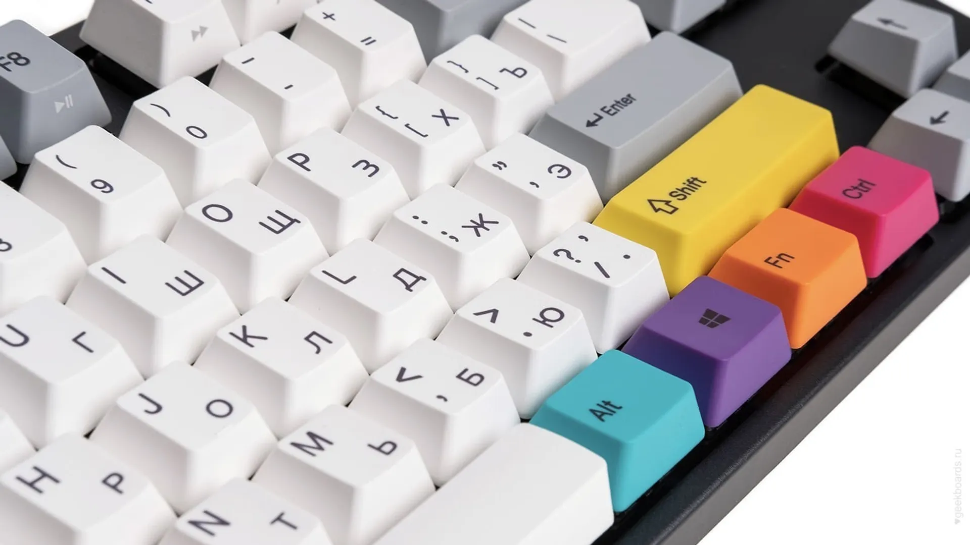 Сочетание стабилизаторов и смазки делает ход клавиш enter, space, shift, backspace равномерным и плавным.