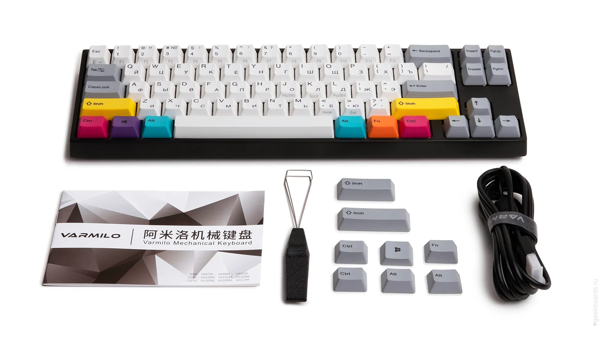 Varmilo – производитель, которого по многим параметрам можно поставить на один уровень с Леопольд: они также серьезно относятся к качеству своей продукции, они точно также не тратят уйму средств на маркетинг и точно также используют премиальные материалы в своей продукции, но что же их отличает? А отличает их страсть к необычным цветовым решениям. Леопольд стараются выпускать свои продукты в сдержанных и классических тонах, Вармило же не боится экспериментировать и её продукцию можно найти как в классическом исполнении, так и в весьма необычных цветовых решениях.