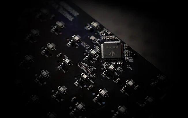 Печатная плата установлена через мягкие прокладки, что создаёт ощущение «пружинящего» нажатия и делает звук мягким, глухим и глубоким. Эта система также снижает вибрации и продлевает срок службы компонентов.