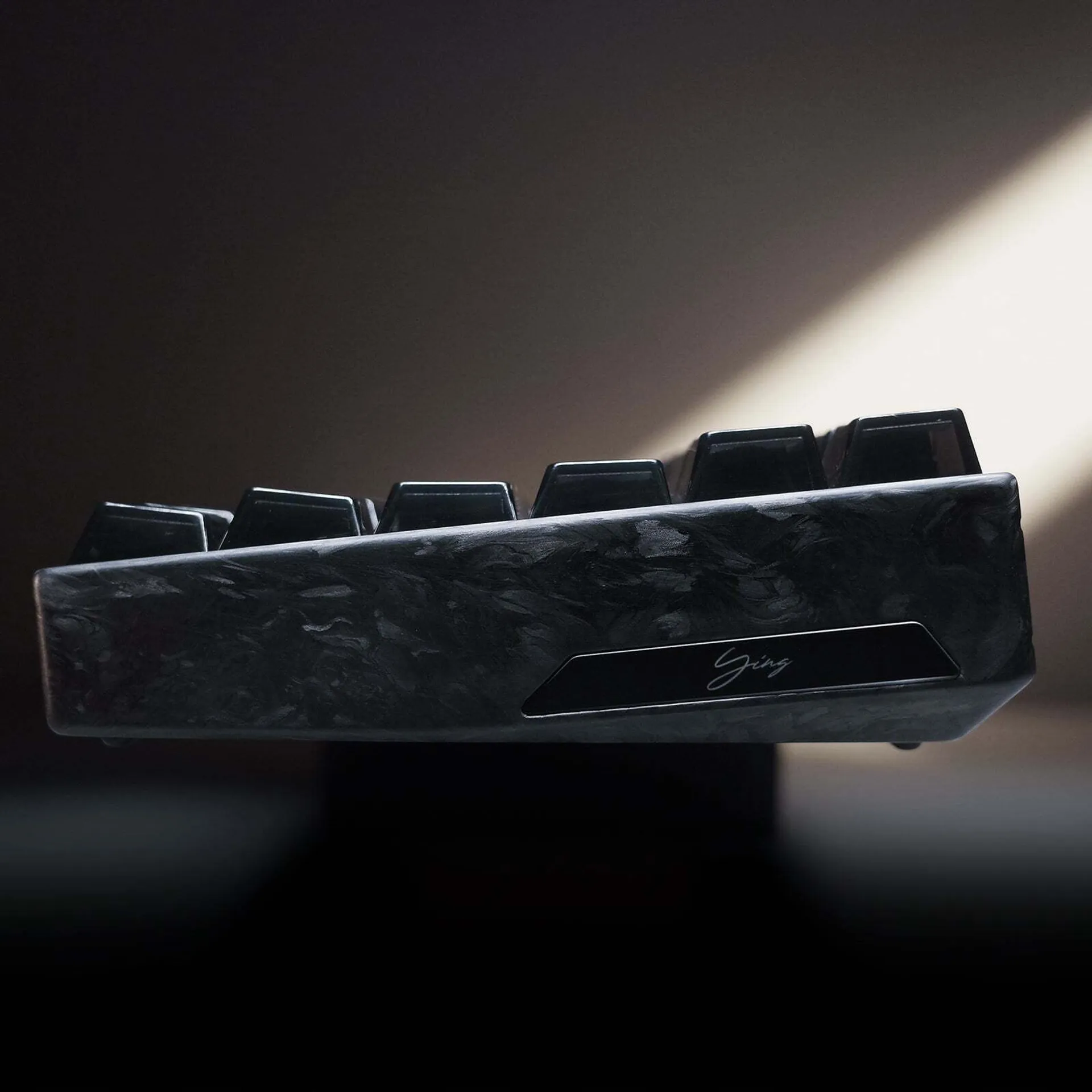 YING75 HE — премиальная механическая клавиатура формата 75%, где сочетаются передовые технологии, инновационные материалы и максимальный комфорт при наборе. Корпус выполнен из настоящего кованого углеродного волокна — материала, который обычно используют в спортивных авто и часах класса люкс. Этот материал не только лёгкий и прочный, но и создаёт уникальный визуальный эффект: каждый корпус имеет собственную текстуру, неповторимую, как отпечаток пальца.