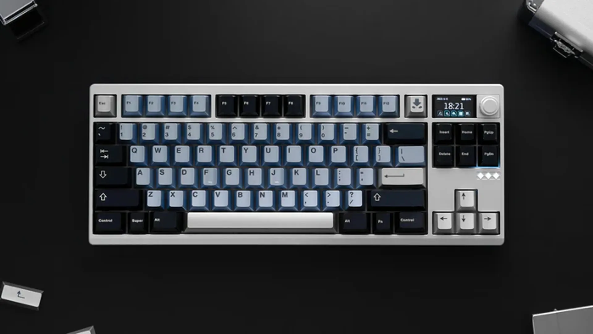 - Хотсвап — Модель построена на Tri-mode PCB с хотсвап-поддержкой MX-совместимых переключателей, что позволяет менять свитчи без пайки и подбирать их под желаемый звук и тактильность. Набор из двух аккумуляторов по 4000 mAh обеспечивает длительную автономность без подзарядки.